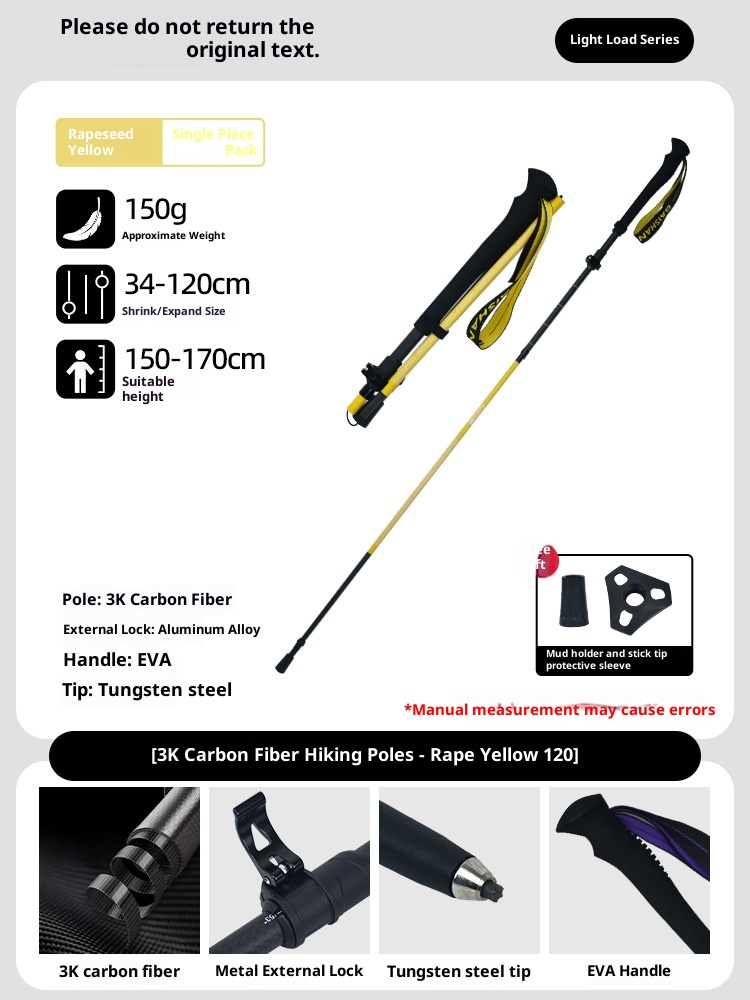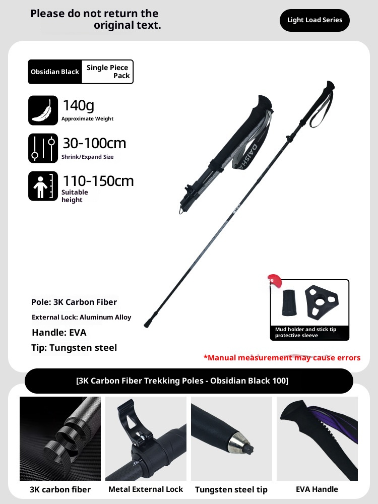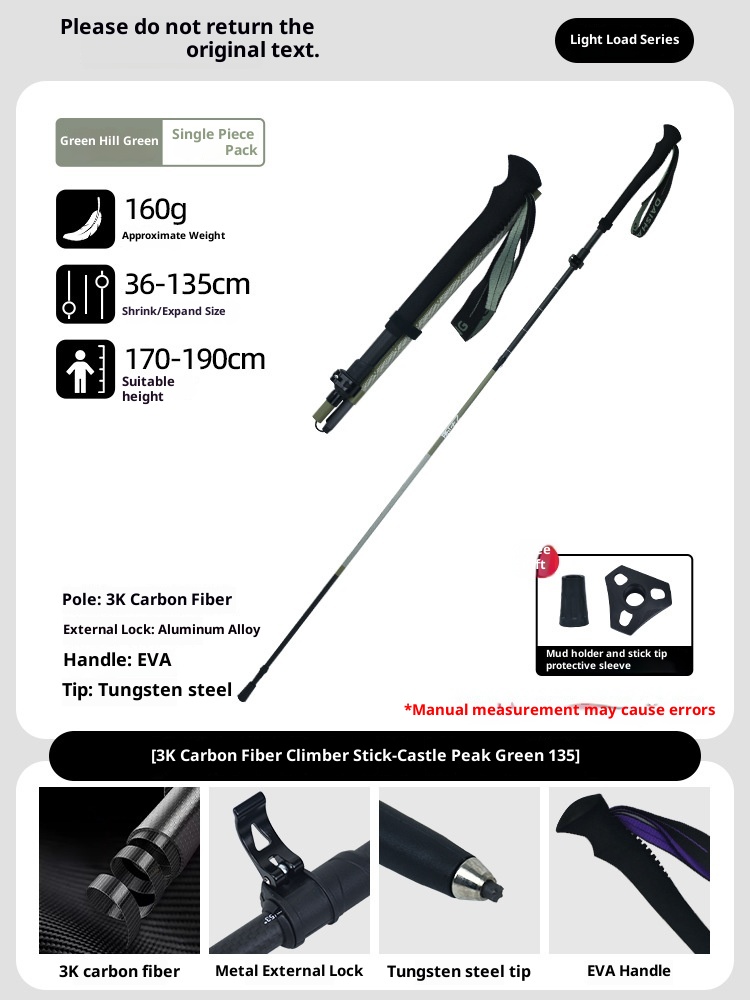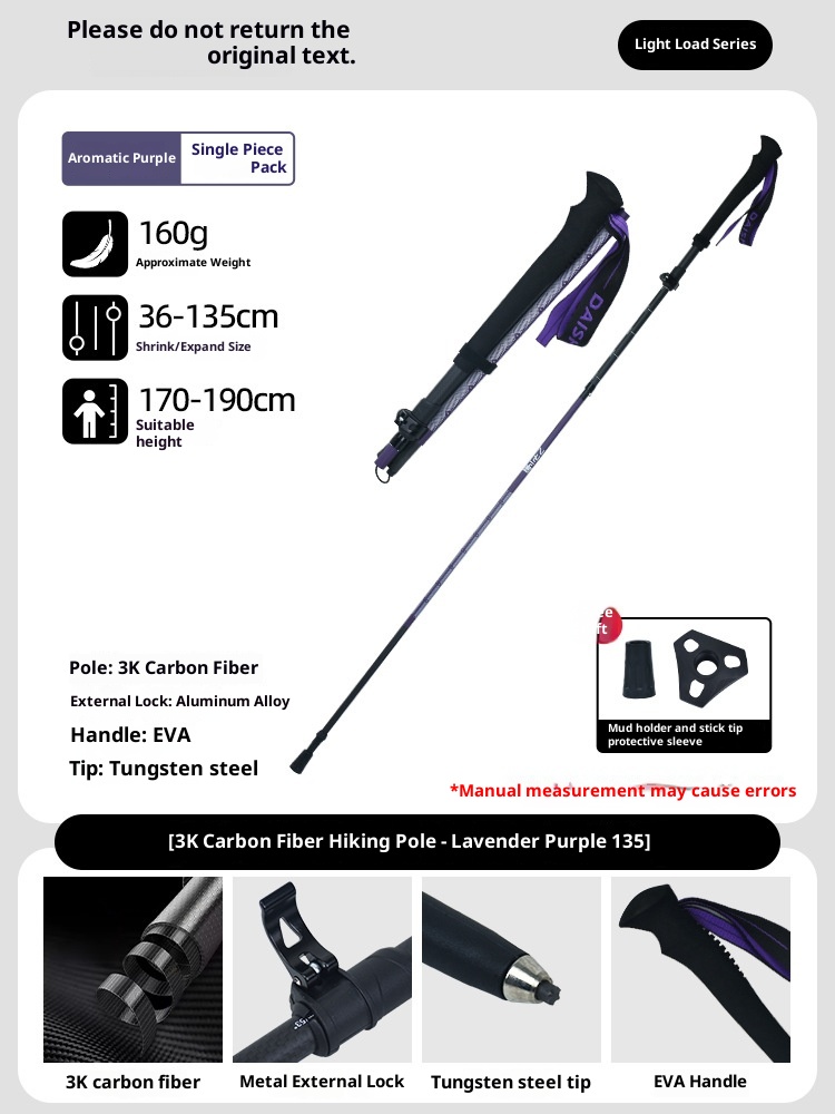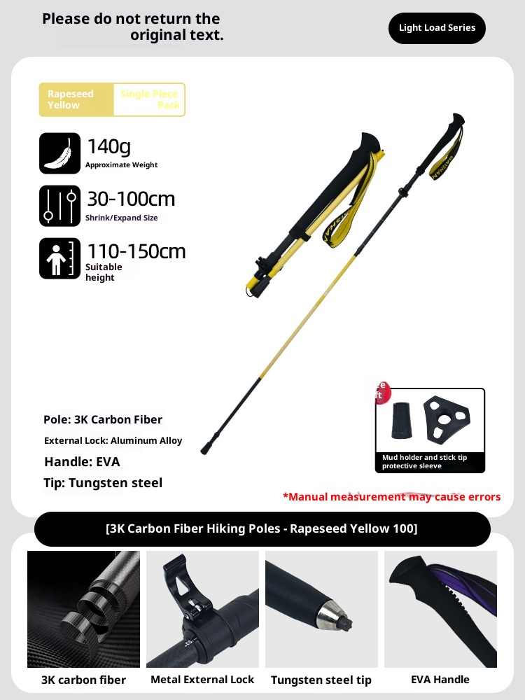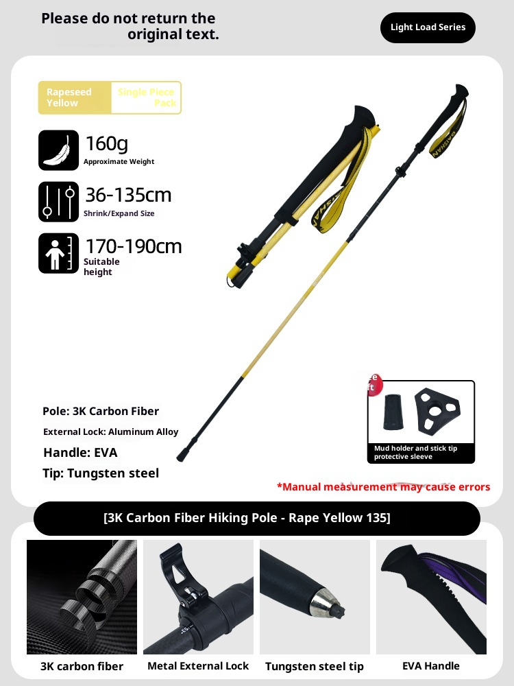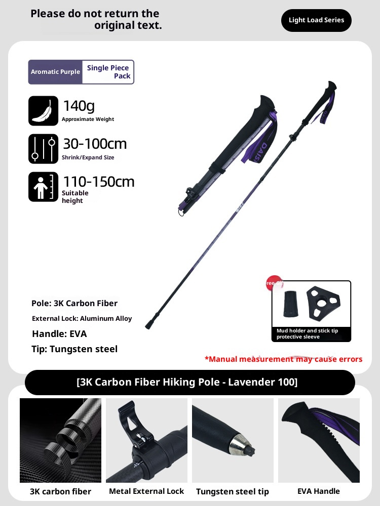 Brand:Miss Yizi,Product Category:Climbing Poles,Material:Carbon Fiber,Weight:150g,Item Number:3K Carbon Trekking Pole,Origin:Ningbo,Size:Contact customer service,Color:3K Carbon Fiber - Lavender Purple 110-150 - Ultra Light 140g, 3K Carbon Fiber - Lavender Purple 150-170 - Ultra Light 150g, 3K Carbon Fiber - Lavender Purple 170-190 - Ultra Light 160g, 3K Carbon Fiber - Green Mountain Green 110-150 - Ultra Light 140g, 3K Carbon Fiber - Green Mountain Green 150-170 - Ultra Light 150g, 3K Carbon Fiber - Green Mountain Green 170-190 - Ultra Light 160g, 3K Carbon Fiber - Obsidian Black 110-150 - Ultra Light 140g, 3K Carbon Fiber - Obsidian Black 150-170 - Ultra Light 150g, 3K Carbon Fiber - Obsidian Black 170-190 - Ultra Light 160g, 3K Carbon Fiber - Rapeseed Yellow 110-150 - Ultra Light 1Carbon - Rapeseed Yellow 170-190 - Ultra-light 160g, 3K Carbon - Telescopic Pole Sky Blue - Recommended for use under 185cm, 3K Carbon - Telescopic Pole Wine Red - Recommended for use under 185cm, 3K Carbon - Telescopic Pole Sky Blue - Recommended for use under 165cm, 3K Carbon - Telescopic Pole Wine Red - Recommended for use under 165cm, Carbon Telescopic Pole - Slate Black / Recommended for height under 170cmOnly 157g, Carbon Telescopic Pole - Slate Black / Recommended for Height Below 190cmOnly 168g, Carbon Telescopic Pole - Shell White / Recommended for Height Below 170cmOnly 157g, Carbon Telescopic Pole - Shell White / Recommended for Height Below 190cmOnly 168g, Carbon Telescopic Pole - Songhu Green / Recommended for Height Below 170cmOnly 157g, Carbon Telescopic Pole - Songhu Green / Recommended for Height Below 190cmOnly 168g,Main downstream platforms:, , , , Independent Station, ,Main sales regions:Europe, South America, Southeast Asia, North America, Northeast Asia, Middle East,We have authorized private labels available:yes,Is it exclusively for cross-border export supply?:yes,Children's Exclusive:No