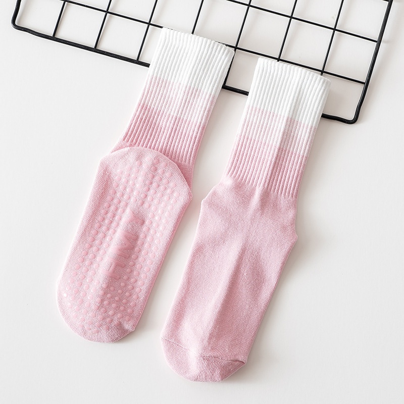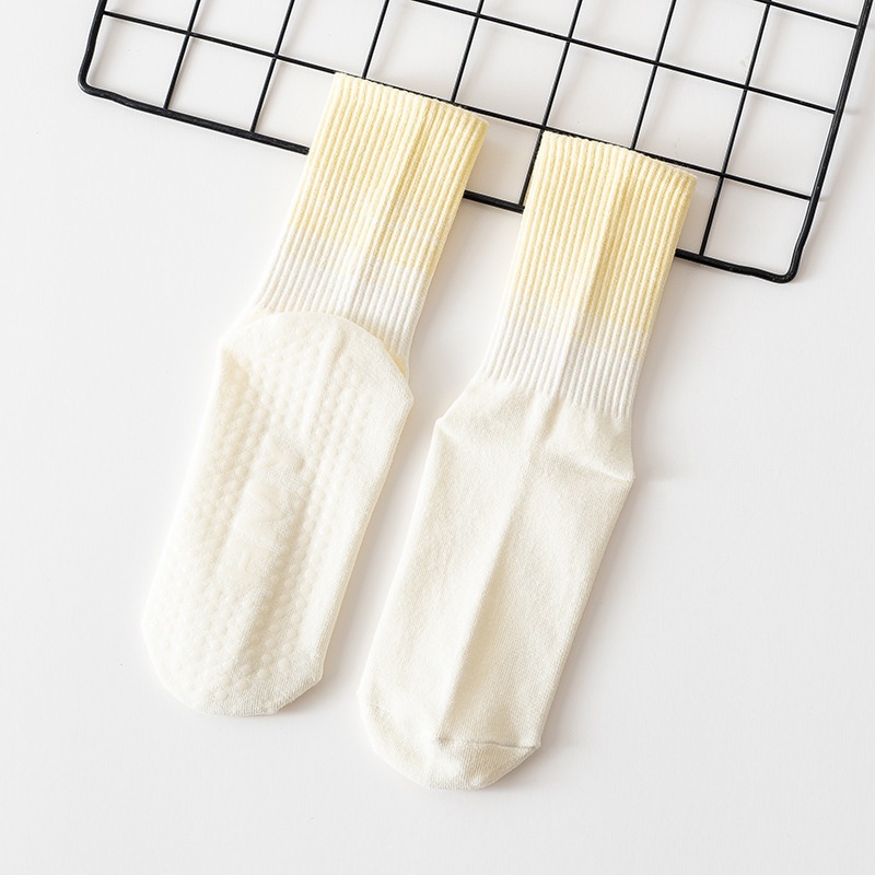 Chaussettes de yoga mi-mollet antidérapantes en silicone, couleur dégradée, pour femmes, idéales pour le fitness, le Pilates et la danse (vente en gros).