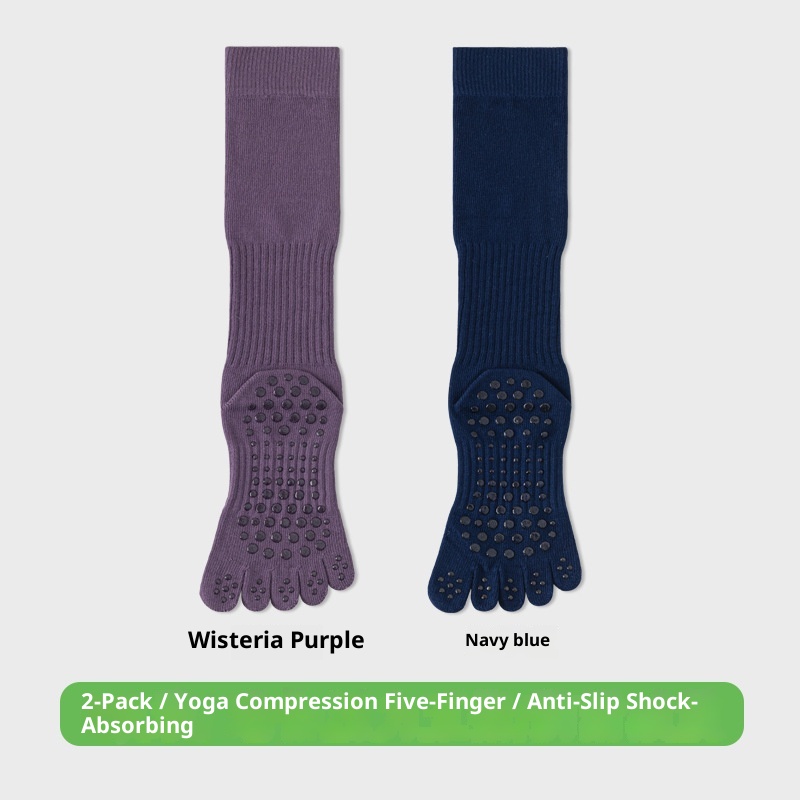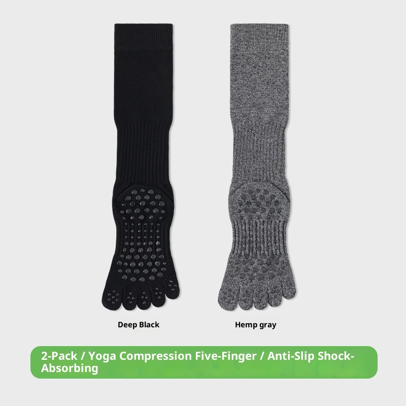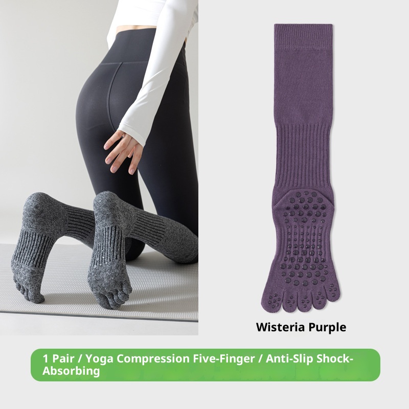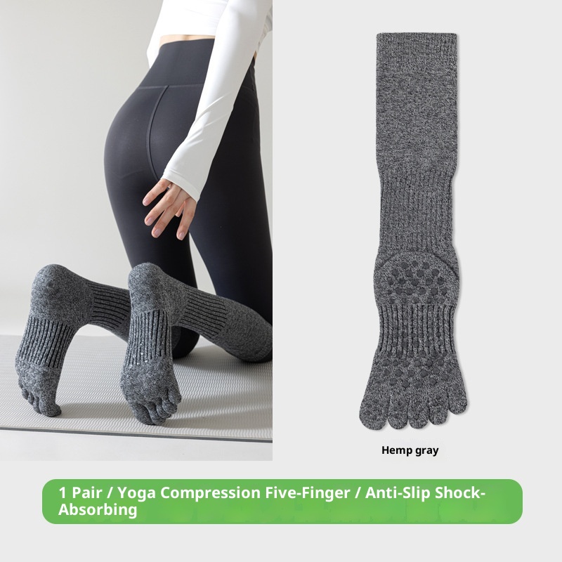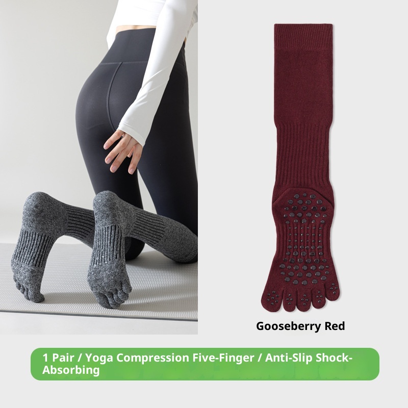 Chaussettes de yoga Five Fingers pour femmes, chaussettes de sport tubulaires longues, compression antidérapantes, idéales pour le fitness et le Pilates.