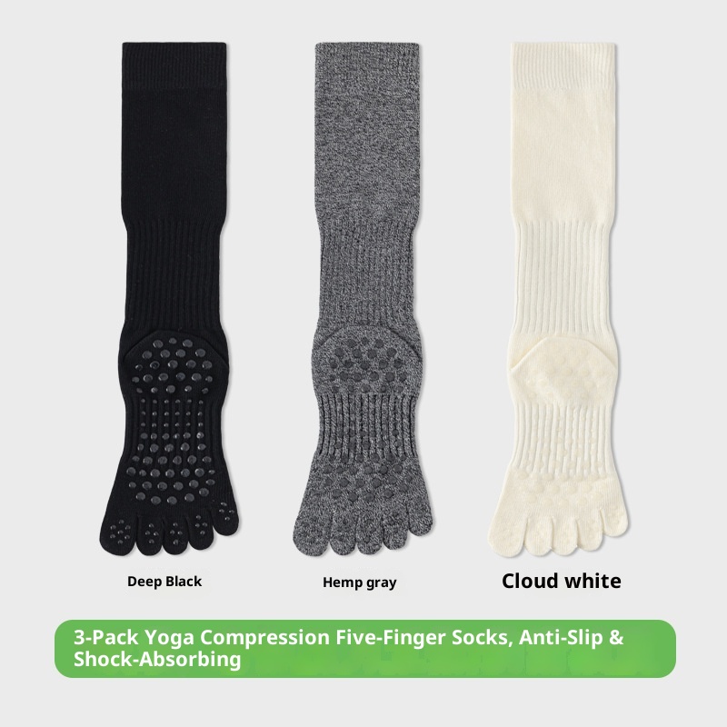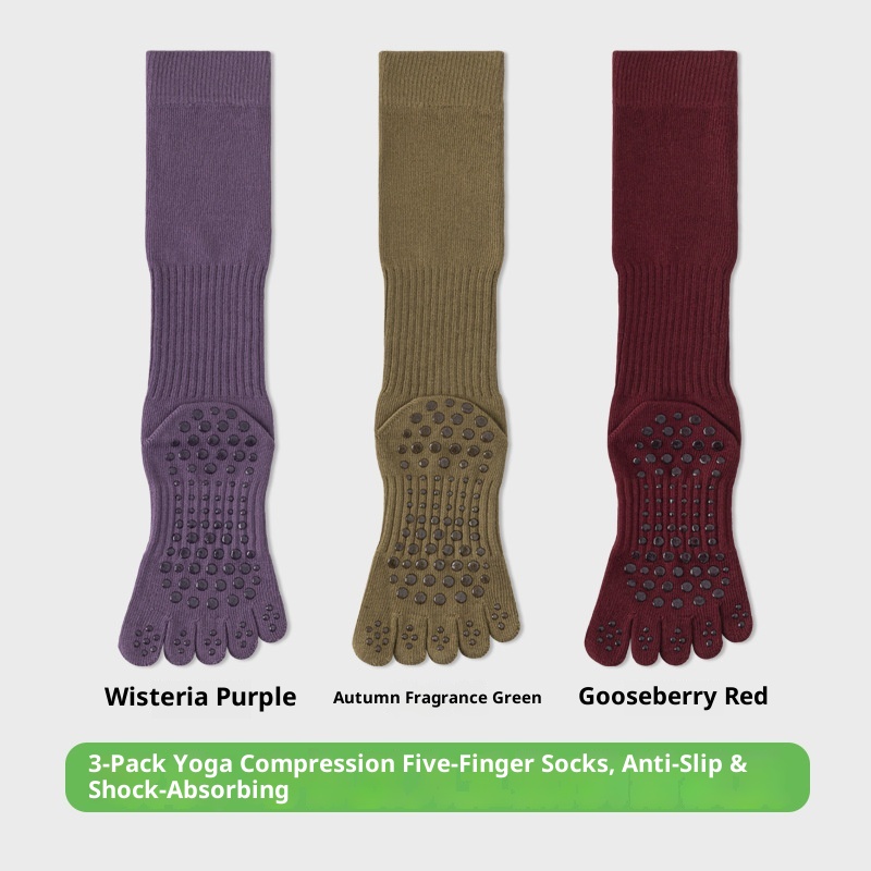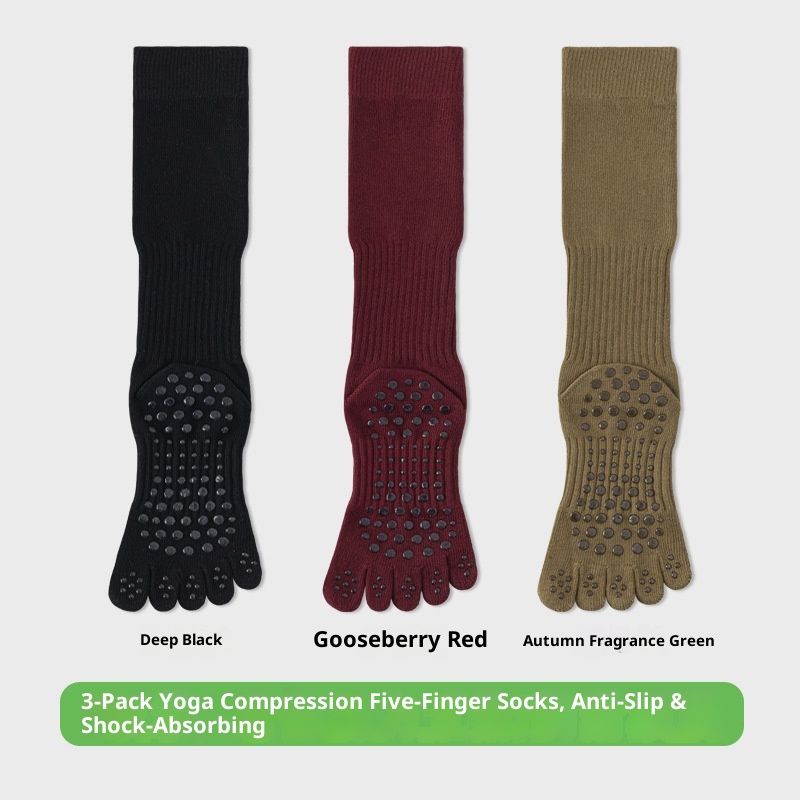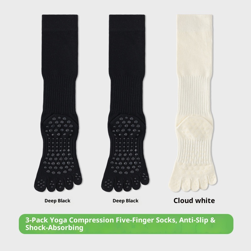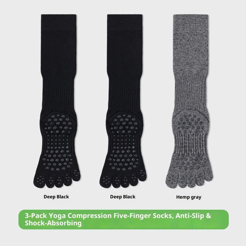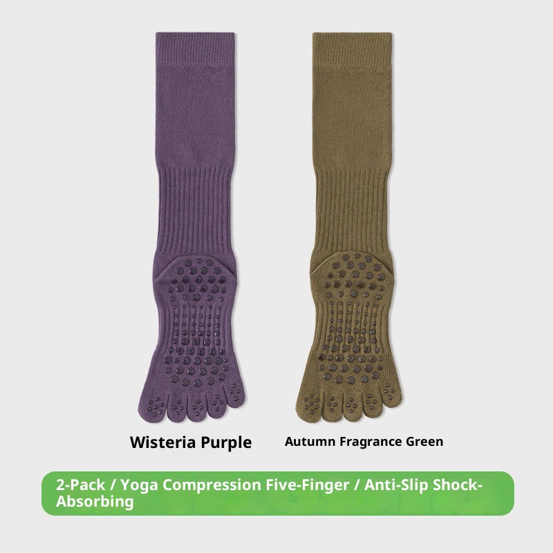 Chaussettes de yoga Five Fingers pour femmes, chaussettes de sport tubulaires longues, compression antidérapantes, idéales pour le fitness et le Pilates.