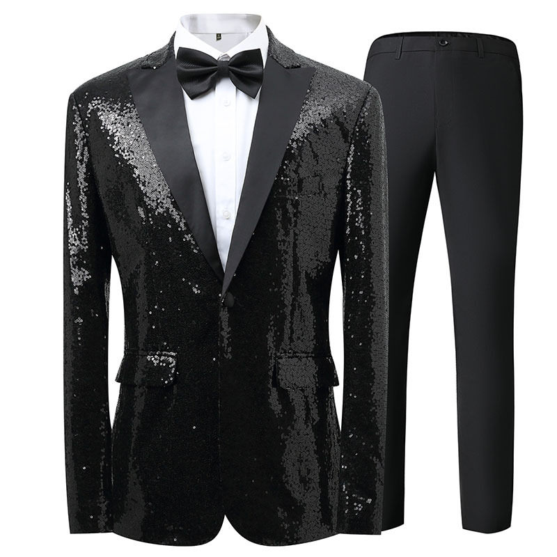 Product Source Category:In Stock,Brand:Victorious Autumn Noble,Item Number:Sequin 6-color Three-piece Set,Bargain Category:Youth Fashion 18-24 Years Old,Front placket:Single-row One Button,Error margin:1-3cm.,Suitable for the season:Four Seasons,Is it in stock?:yes,Inventory Type:Complete order,Fabric Name:Synthetic Blend Fabric,Main fabric composition:Acetate fiber,Content of the main fabric components:100,Applicable Scenarios:wedding,Collar Style:Peak Lapel,Slit Design:No slits,Design:Slim Fit,Thickness:Regular,Year/Season of Release:2025 Summer,Design details:Color Blocking,Color:Blue Top + Black Pants + Bow Tie, silver Top + Black Pants + Bow Tie, Red Top + Black Pants + Bow Tie, gold Top + Black Pants + Bow Tie, Black Top + Black Pants + Bow Tie,Size:3XL Top + 32 Pants + Bow Tie, 4XL Top + 34 Pants + Bow Tie, 5XL Top + 35 Pants + Bow Tie, 6XL Top + 36 Pants + Bow Tie,Main downstream platforms:, , , , Independent Station, ,Main sales regions:Europe, Southeast Asia,We have authorized private labels available:yes,Is it exclusively for cross-border export supply?:yes,Style:Light Business,Clothing Craftsmanship:Adhesive Lining Technology,Original Design Source:yes,Is there a quality inspection report?:No,Material function:Breathable, doesn't pill, doesn't shed, doesn't fade