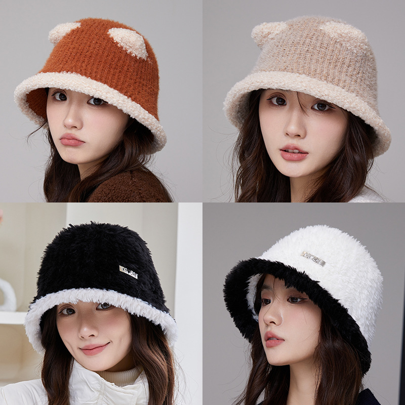 2023 New Plush Fisherman Hat for Women in Autumn and Winter, Versatile for Showcasing Face, Small Ear Protection, Warm Knitted Bucket Hat