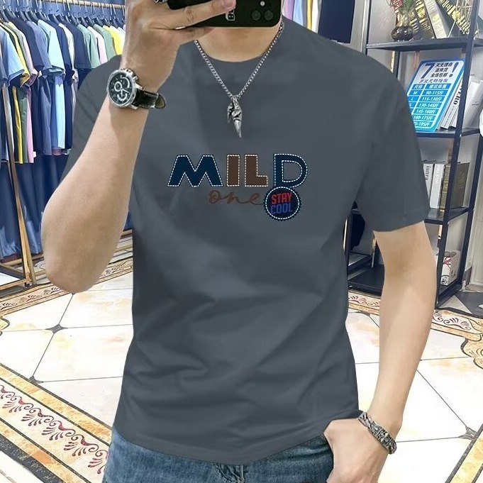 2023 Winter Fashion Men's T-shirt Round Neck Versatile Casual Bottom Half Sleeve Sticker Embroidery Letter Trendy Short Sleeve