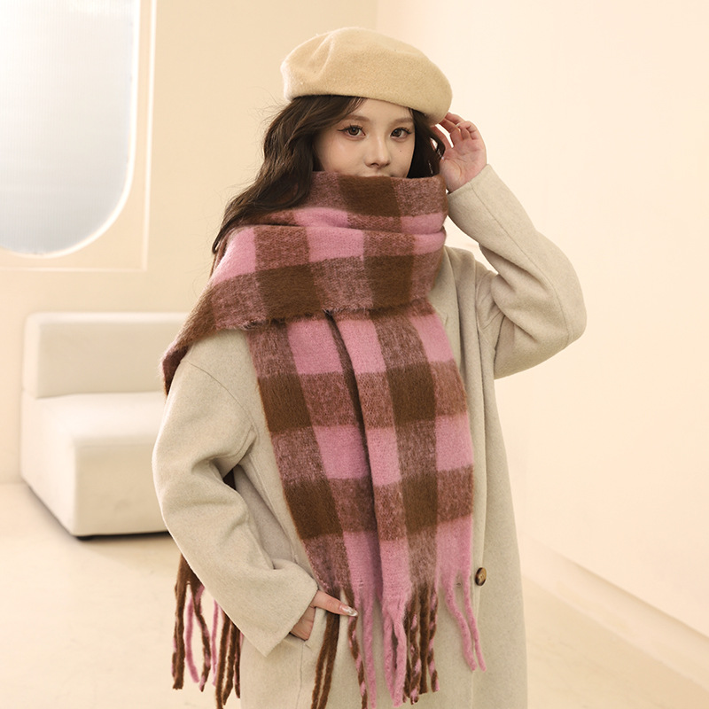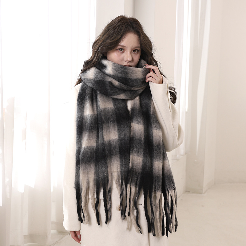 Écharpe épaisse en mohair automne-hiver 2024 avec atmosphère, chaleur haut de gamme, version coréenne polyvalente pour hommes et femmes