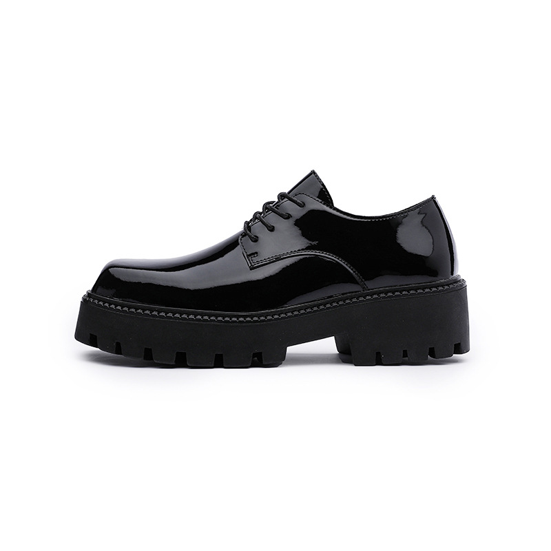 2023 Big upturned square toe leather shoes, new thick soled sponge cake shoes, elevated casual Derby shoes, trendy niche low top shoes