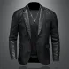 Vestes en cuir synthétique pour homme, col rabattu, coupe cintrée, noir, daim, moto, décontracté, neuf, 2025