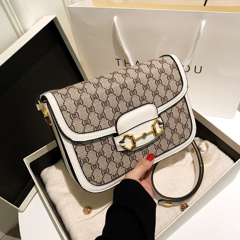 2025 High-End Commuter Women's Bag Fashion Printed Single Shoulder Crossbody Small Square Saddle Bag