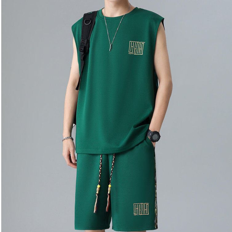 2025 New Fashion Trend Embroidered Casual Sports Suit Men's Sleeveless T-Shirt Two-Piece Set Summer Thin Vest