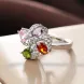Fashion Vintage Delicate Floral Ruby Rings for Female Temperament Inlaid Full of Cubic Zirconia Opening Ring Party Birthday Gift