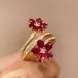2025 Nouveautés Mode Vintage Délicate Floral Ruby Rings pour Tempérament Féminin Incrusté Plein de Zircone Cubique Ouverture Anneau Fête