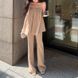 Ensemble été 2025 style coréen élégant : débardeur épaules dénudées et pantalon évasé taille haute.