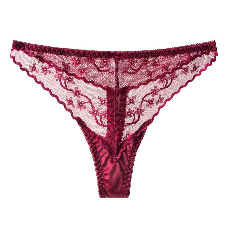 2025d Sijian String sexy en dentelle imprimée pour femme, respirant, séchage rapide, taille basse, soie glacée, très élastique