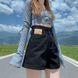 Short en jean femme années 2025, coupe ajustée, coupe droite, double boutonnage, ourlet roulé, coupe trapèze, taille ultra haute, ample