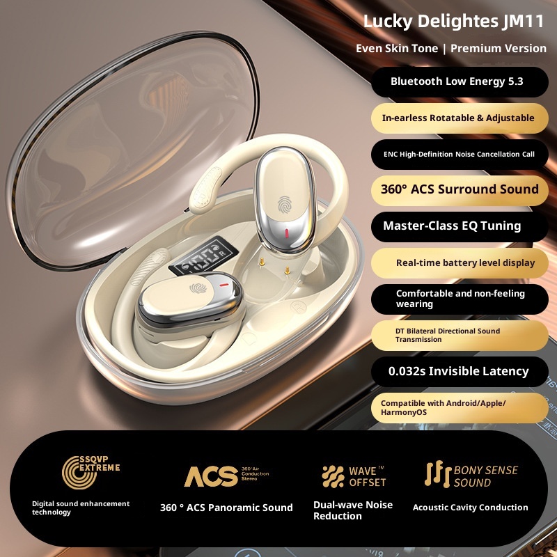 Brand:Neutral,Transmission Range:10m,Functionality:Noise reduction, ultra-long battery life, call function, supports music, low latency for gaming,Bluetooth Protocol:5.4,How to use:Clip-on Earrings,Is it single or double ear?:Bilateral Stereo Sound,Color:JM05 black, JM11 black, JM11 skin color,Main downstream platforms:, , , , Independent Station, , Others,Main sales regions:Africa, Europe, South America, Southeast Asia, North America, Northeast Asia, Middle East, Others,We have authorized private labels available:yes,Is it exclusively for cross-border export supply?:yes,Customizable:Support,Type:Neutral color box packaging,Is it a patented source product?:No,Mold Type:Private Model,What type of chip is it?:Zhongke Lanxun,Battery life:More than 8 hours,Year/Season of Release:2024,Style:Sporty style,Waterproof performance:Waterproof for Daily Use,Material:PC+ABS