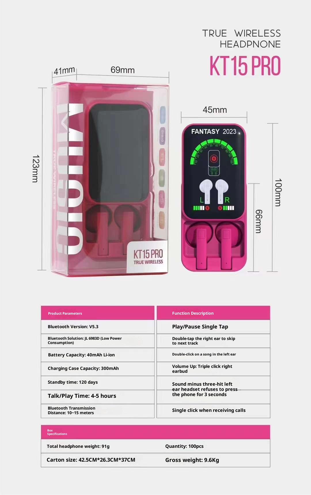 Brand:other,Transmission Range:10,Functionality:Digital Display Screen,Bluetooth Protocol:5.3,How to use:Earbud style,Is it single or double ear?:Bilateral Stereo Sound,Color:M90, M88, KT15pro Black, KT15pro White, KT15pro Rose Red, KT15pro Purple,Main downstream platforms:, , ,Main sales regions:Northeast Asia, Middle East,We have authorized private labels available:yes,Is it exclusively for cross-border export supply?:yes,Customizable:Support,Is it a patented source product?:No,Mold Type:Private Model,What type of chip is it?:Jerry,Battery life:4-8 hours,Year/Season of Release:2022,Style:creative design,Affordable Alternative Brand:Neutral,Item Number:m,Waterproof performance:IPX3,Material:Plastic