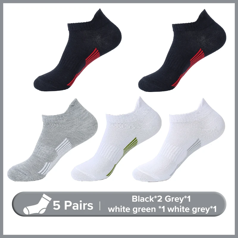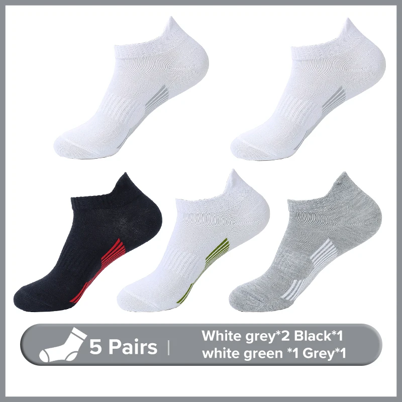 Chaussettes de sport en coton pour hommes, 5 paires/lot, haute qualité, cheville, respirantes, douces et confortables, courtes, à la mode, quatre saisons, 4 Styles