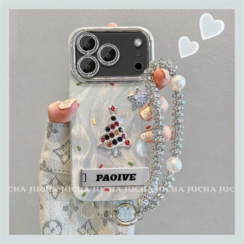 50704555550<=3 Compatible avec chaîne de suspension Coque de téléphone antichoc à couverture intégrale pour iPhone 17 Pro Max, motif sapin de Noël 3D