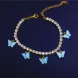 Acrylique papillon femmes bracelets de cheville glacé chaîne de Tennis jambe Bracelet strass Sier or Animal pendentif breloques mode