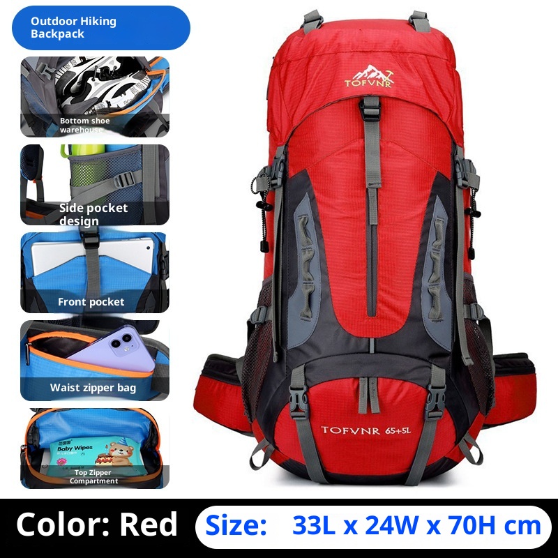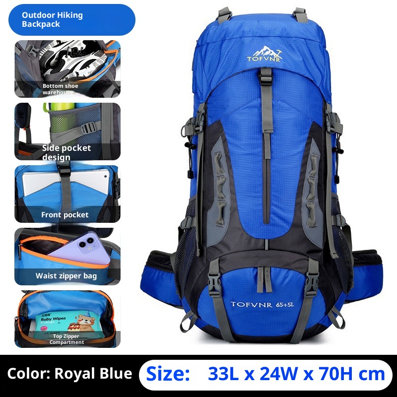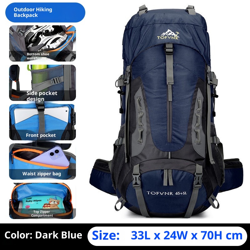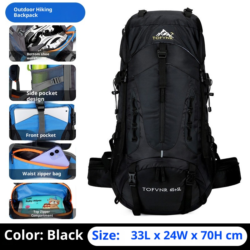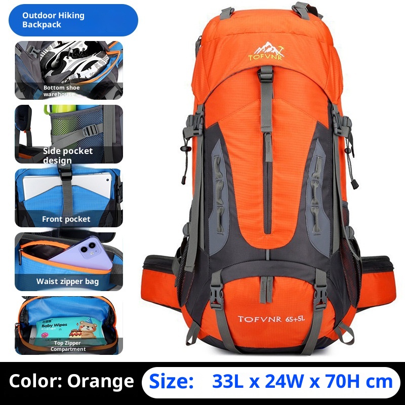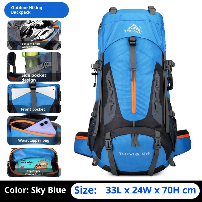 Brand:Shuo Ge,Material:Polyester,Item Number:2201,Applicable Gender:Unisex / Suitable for both men and women,We have authorized private labels available:yes,Functionality:Durable,Color:Black, dark blue, orange, sky blue, royal blue, red,Capacity:65+5L can accommodate 15.6inch computers,Year and season of release:Summer 2023,Applicable Scenarios:Outdoor Sports,Style:Casual Travel,Pattern:Solid Color,The texture of the lining:Nylon,Backpacking System:Air Cushion Strap,Product Category:Hiking Backpack