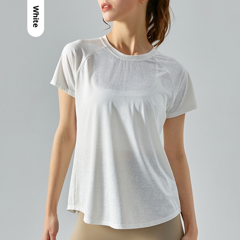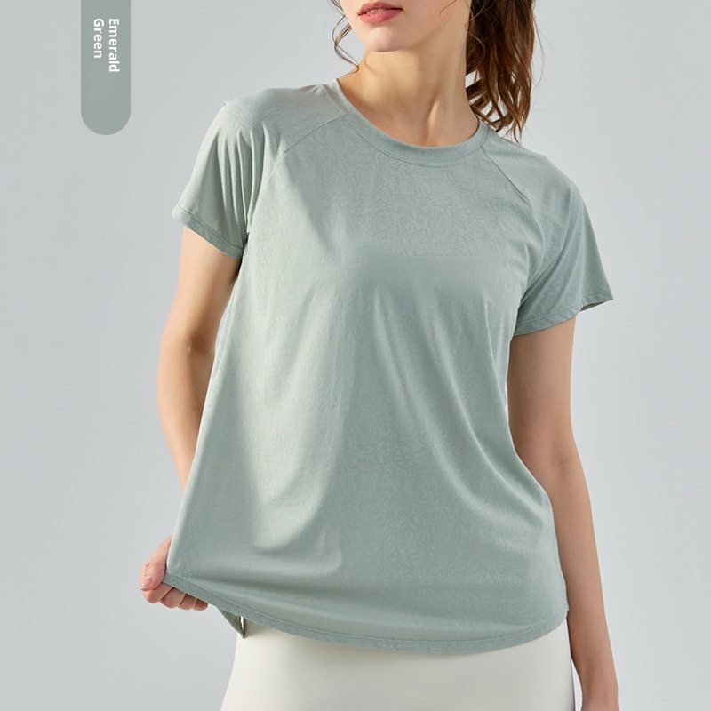 Haut ActiveGo printemps-été extérieur en jacquard jade fendu dans le dos, idéal pour le sport, le fitness et le yoga. Parfait pour les femmes.