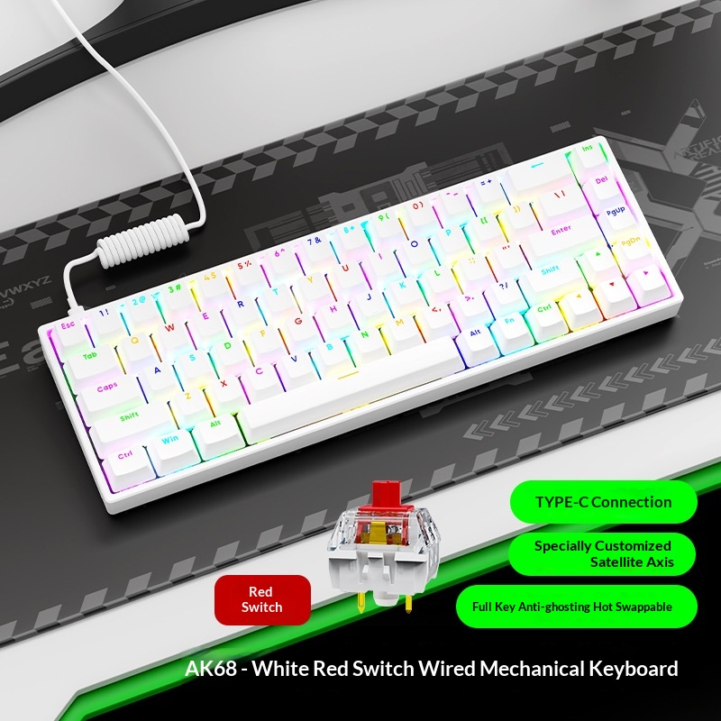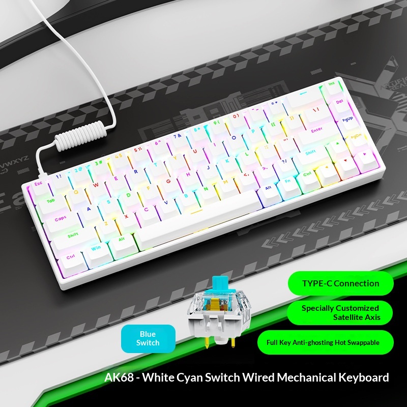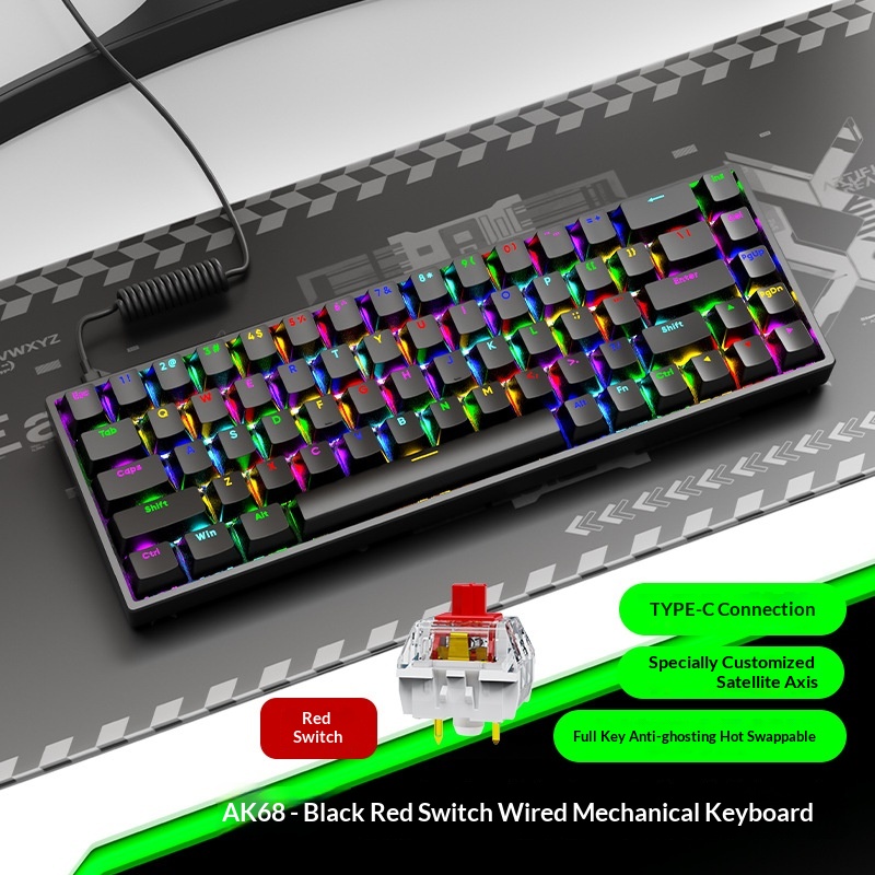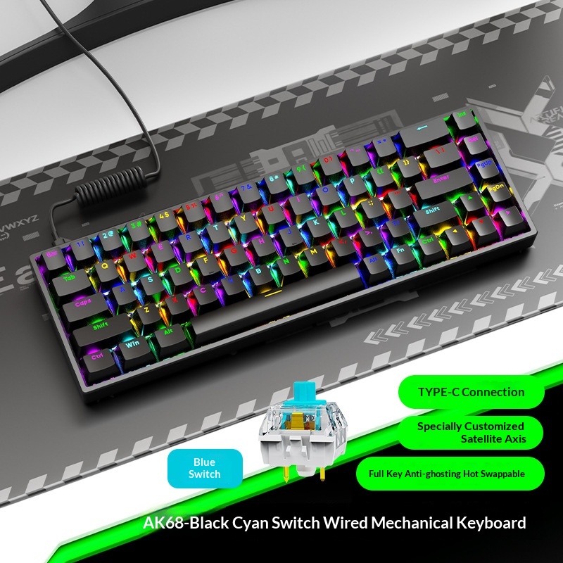 AK68 Key Mechanical Keyboard Blue Red Switch Wired Keyboard Mini Desktop Portable RGB Backlit Small Keyboard