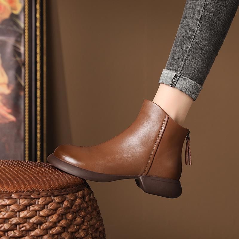 【 Quick Refund 】 【 All Cowhide 】 Genuine Leather Fashionable Short Boots for Women 2023 Autumn/Winter Women's Boots Soft Sole Pure Handmade Ankle Boots for Women