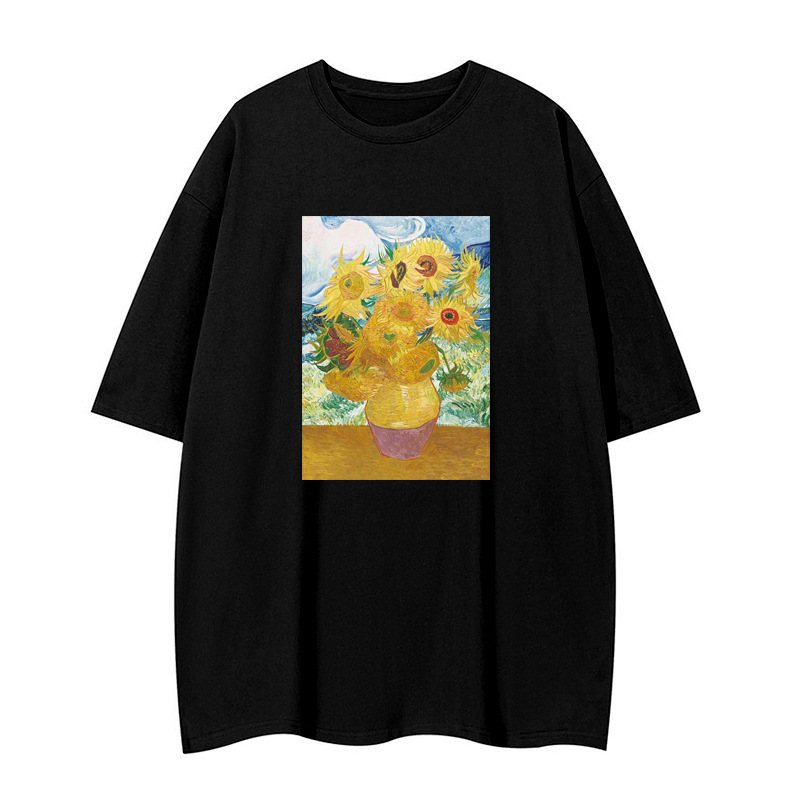 American fashion oil painting short sleeved t-shirt men's half sleeved cotton loose oversize Couple costume T-shirt