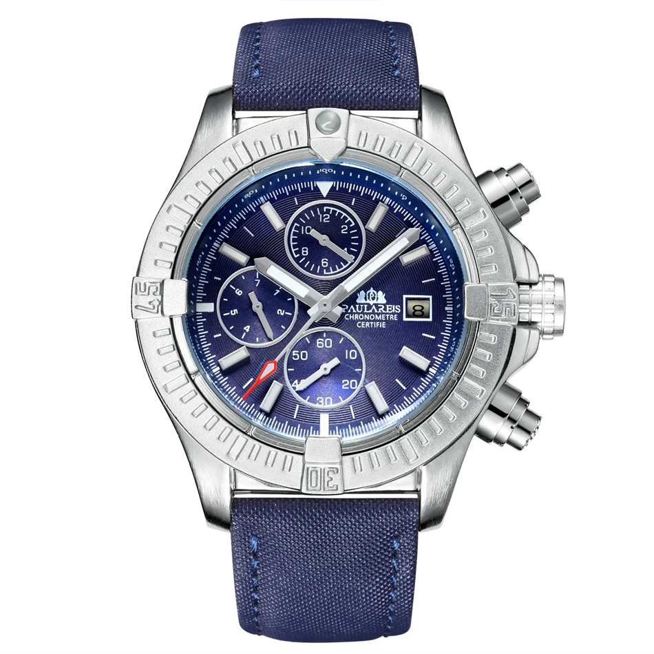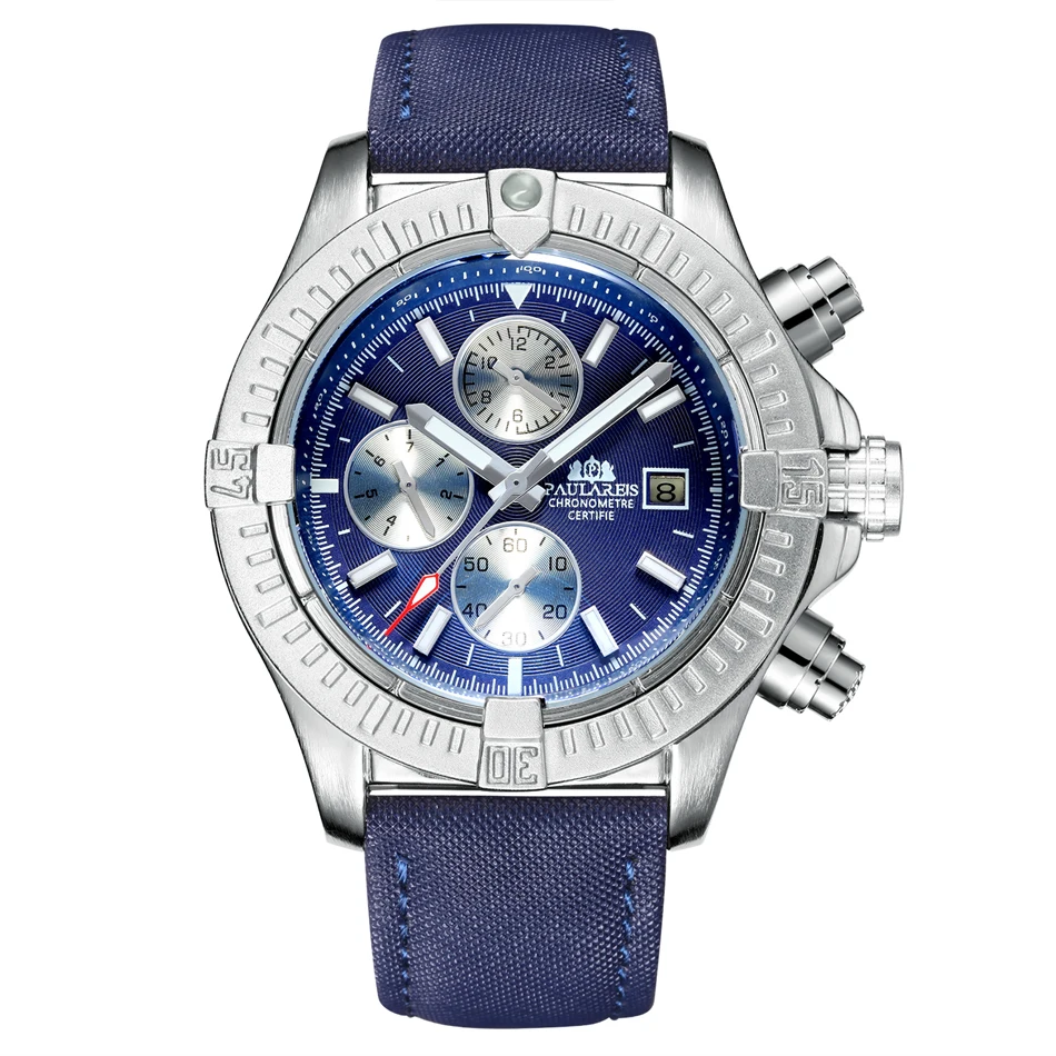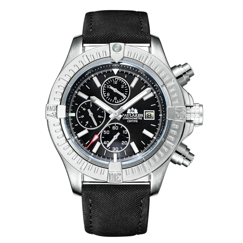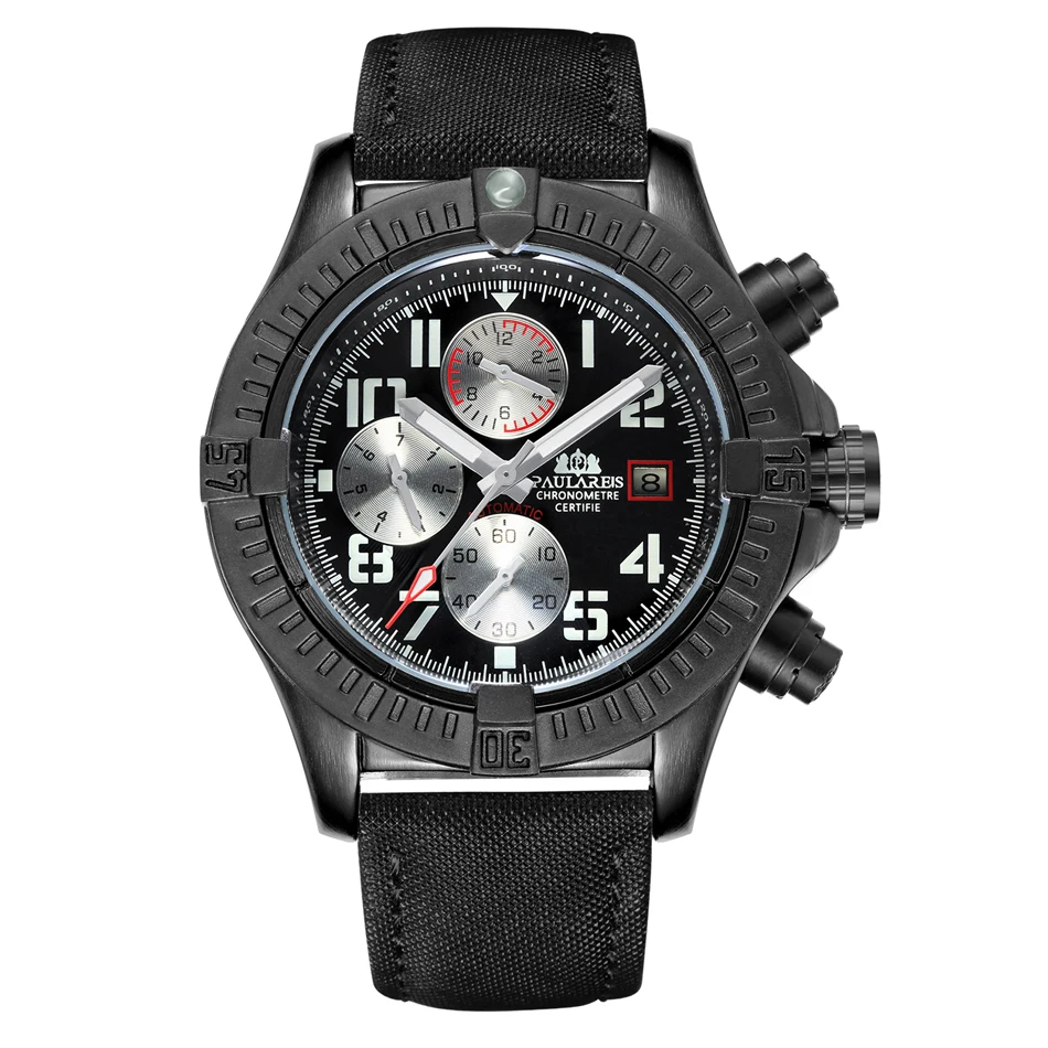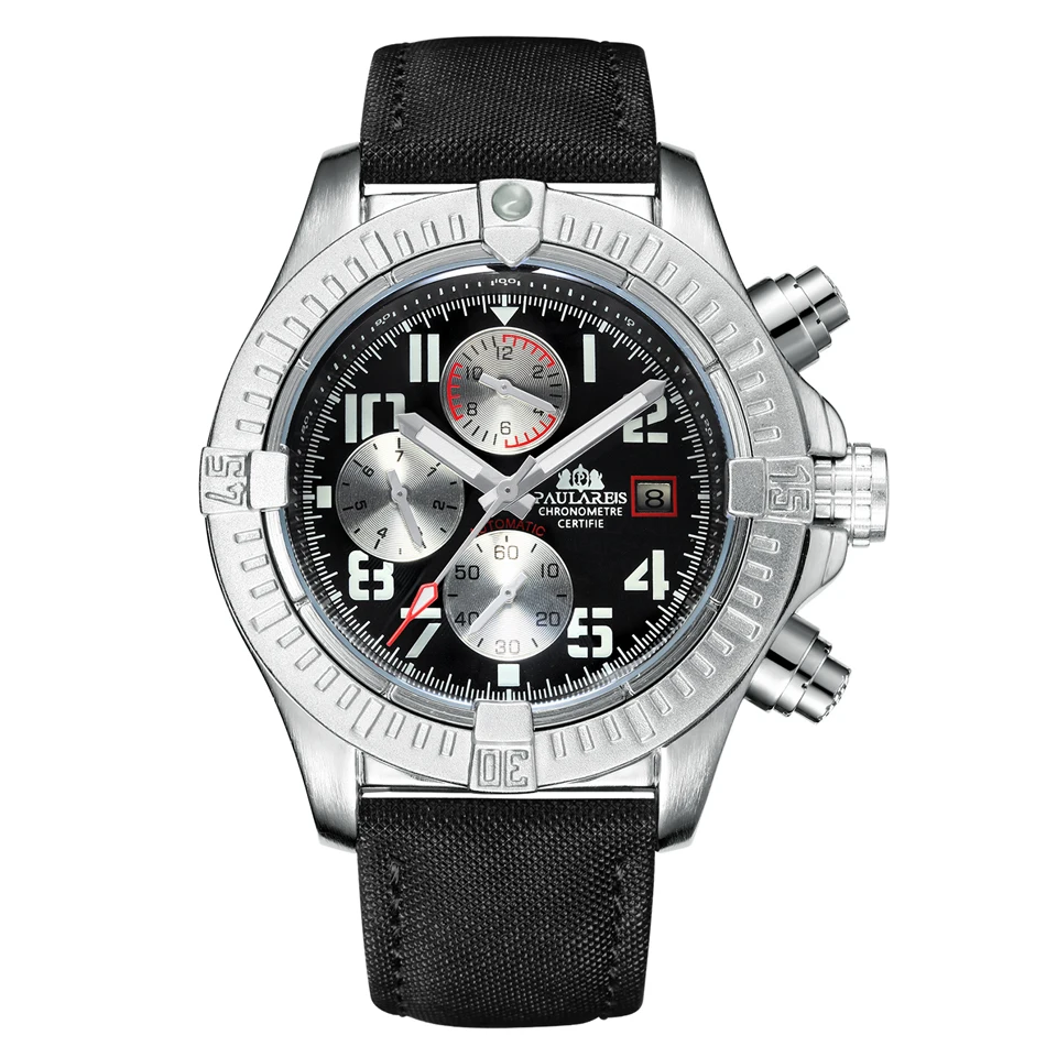 Case Shape:RoundDial Window Material Type:Coated GlassBoxes & Cases Material:No packageDial Diameter:45mmCase Thickness:18mmBand Length:22cmBand Width:22mmBand Material Type:LeatherModel Number:AvengerFeature:Luminous,Complete CalendarStyle:SPORTWater Resistance Depth:3BarClasp Type:BuckleCase Material:AlloyMovement:Automatic Self-WindBrand Name:PAULAREIS POrigin:Mainland China