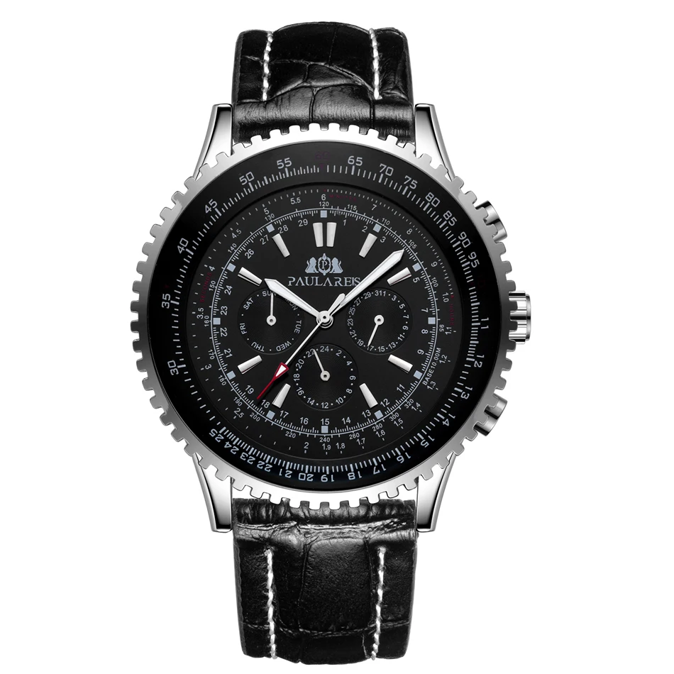 Case Shape:RoundDial Window Material Type:HardlexBoxes & Cases Material:No packageDial Diameter:50mmCase Thickness:15mmBand Length:22cmBand Width:24mmBand Material Type:LeatherModel Number:Bentleys StyleFeature:Complete CalendarStyle:SPORTWater Resistance Depth:3BarClasp Type:Folding Clasp with SafetyCase Material:AlloyMovement:Automatic Self-WindBrand Name:PAULAREIS POrigin:Mainland China