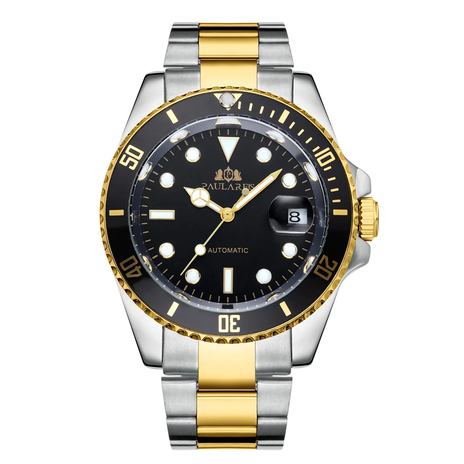 Case Shape:RoundDial Window Material Type:HardlexBoxes & Cases Material:No packageDial Diameter:40mmCase Thickness:13mmBand Length:22cmBand Width:20mmBand Material Type:Stainless SteelModel Number:Submariner StyleFeature:Complete Calendar,luminous handsStyle:LuxuryWater Resistance Depth:3BarClasp Type:Folding Clasp with SafetyCase Material:AlloyMovement:Automatic Self-WindBrand Name:PAULAREIS POrigin:Mainland China
