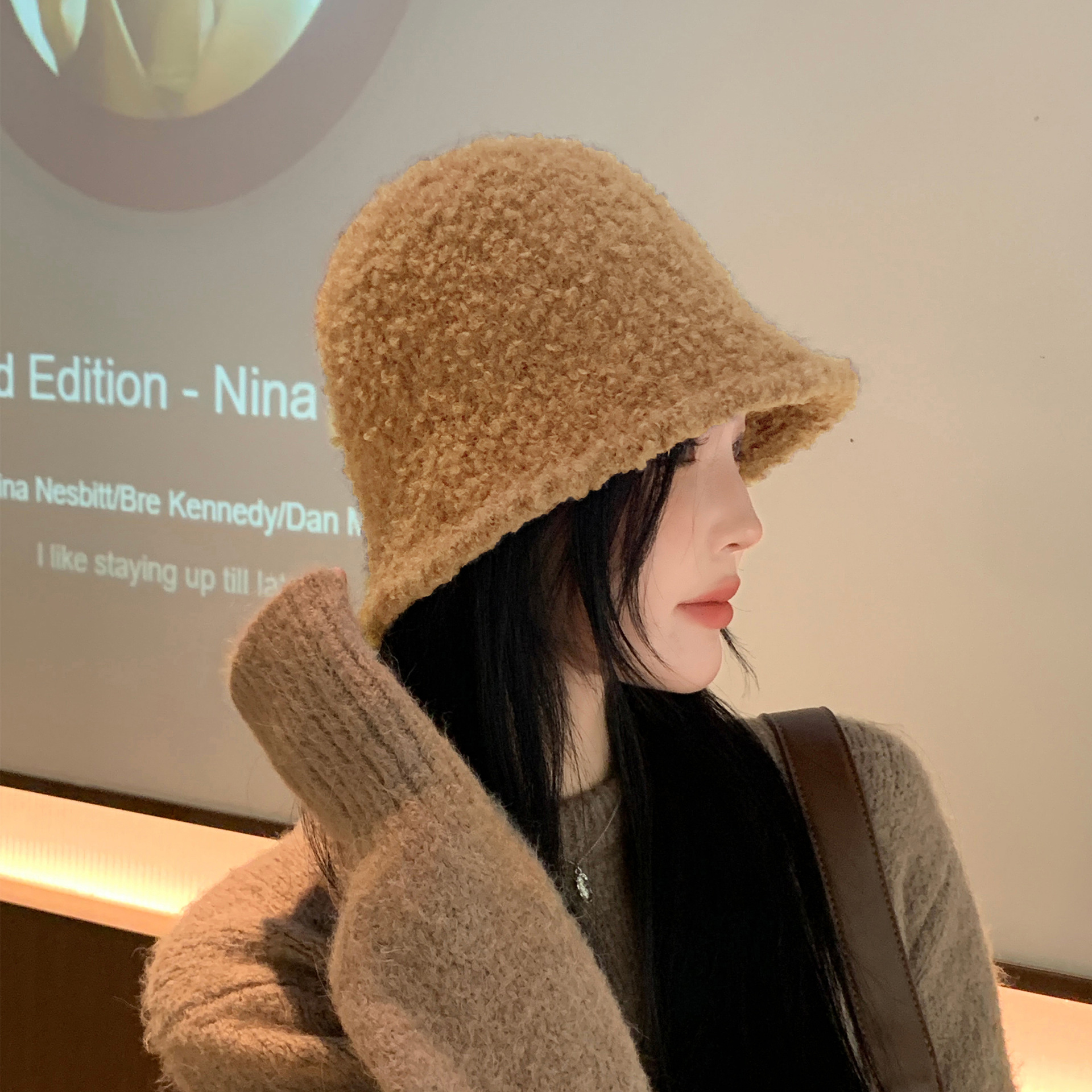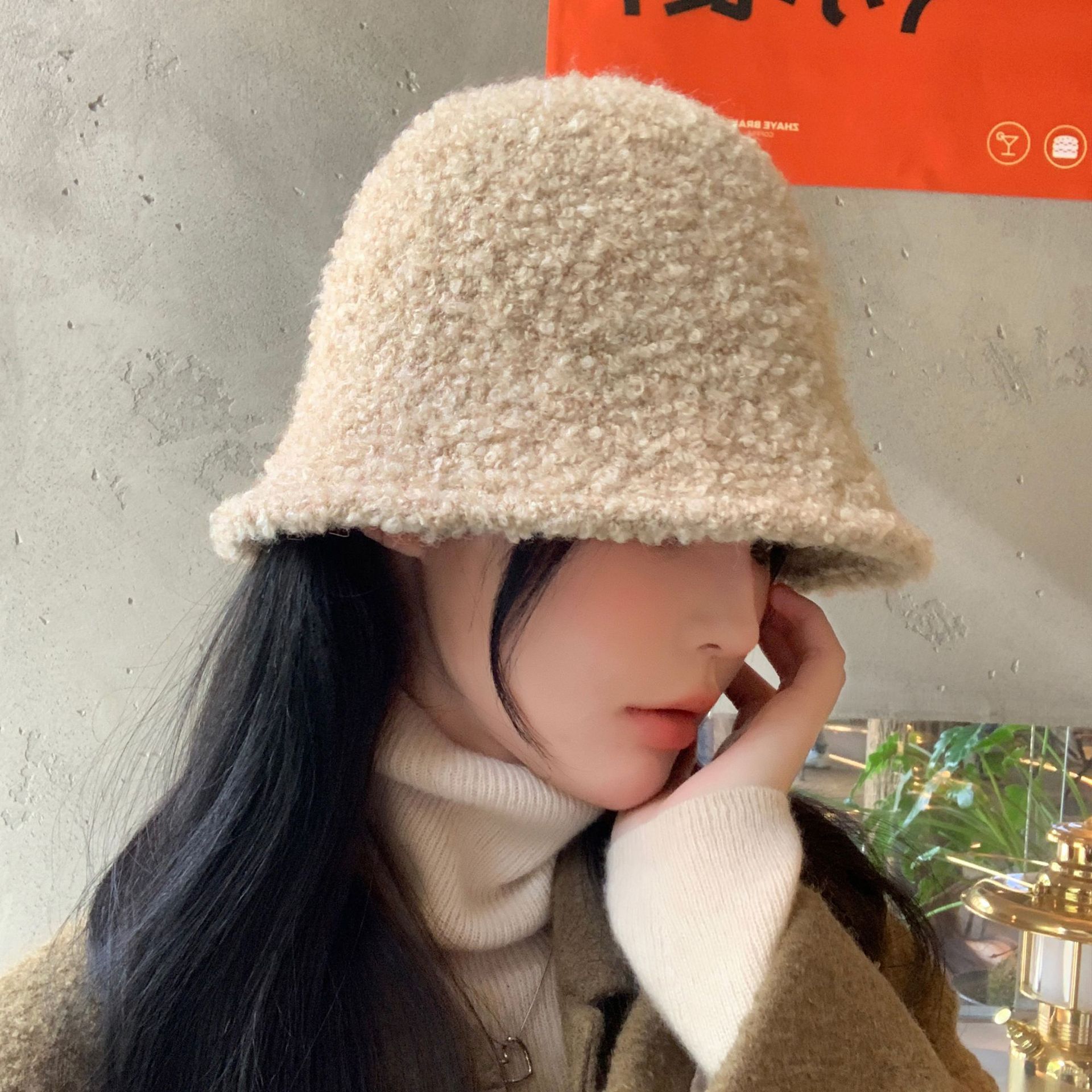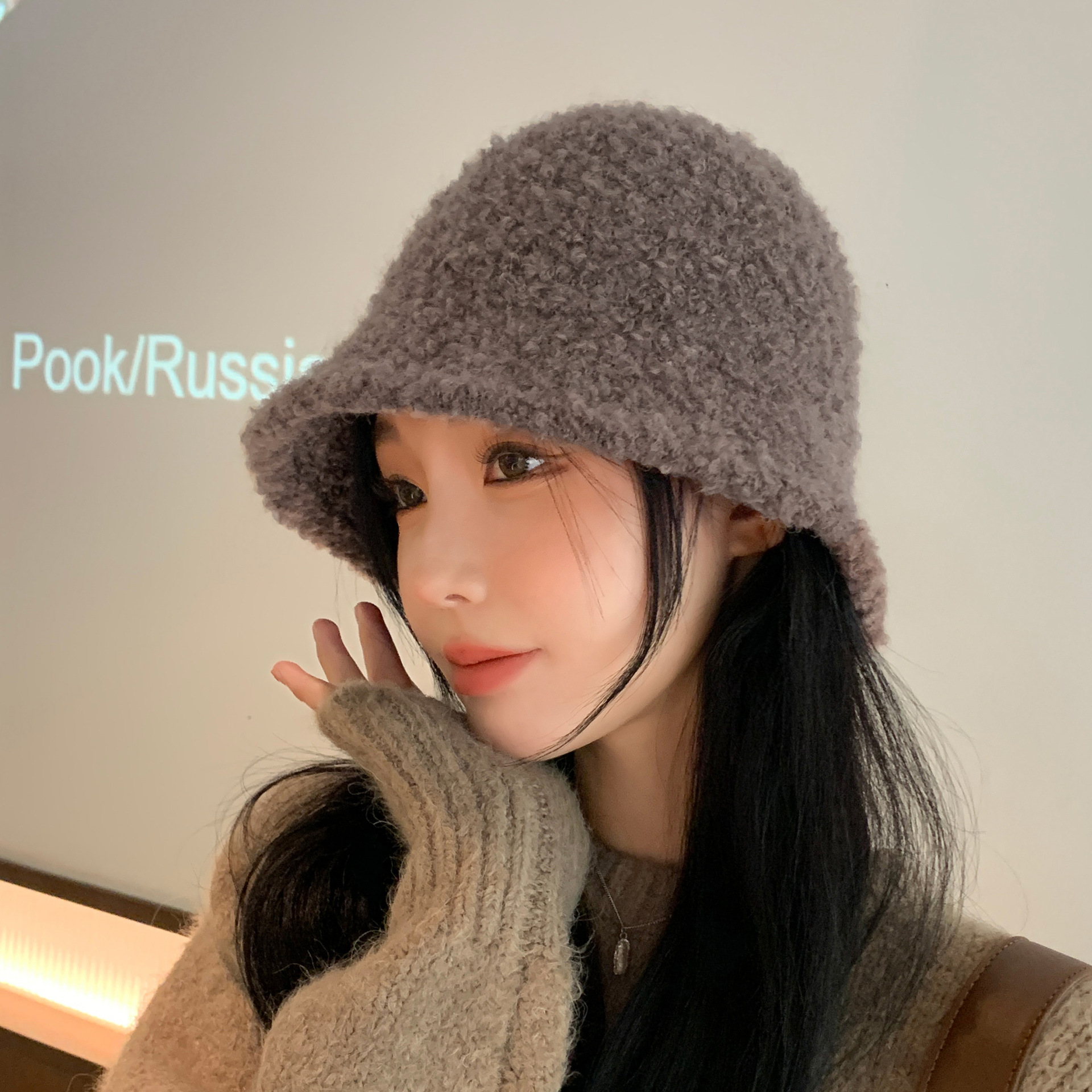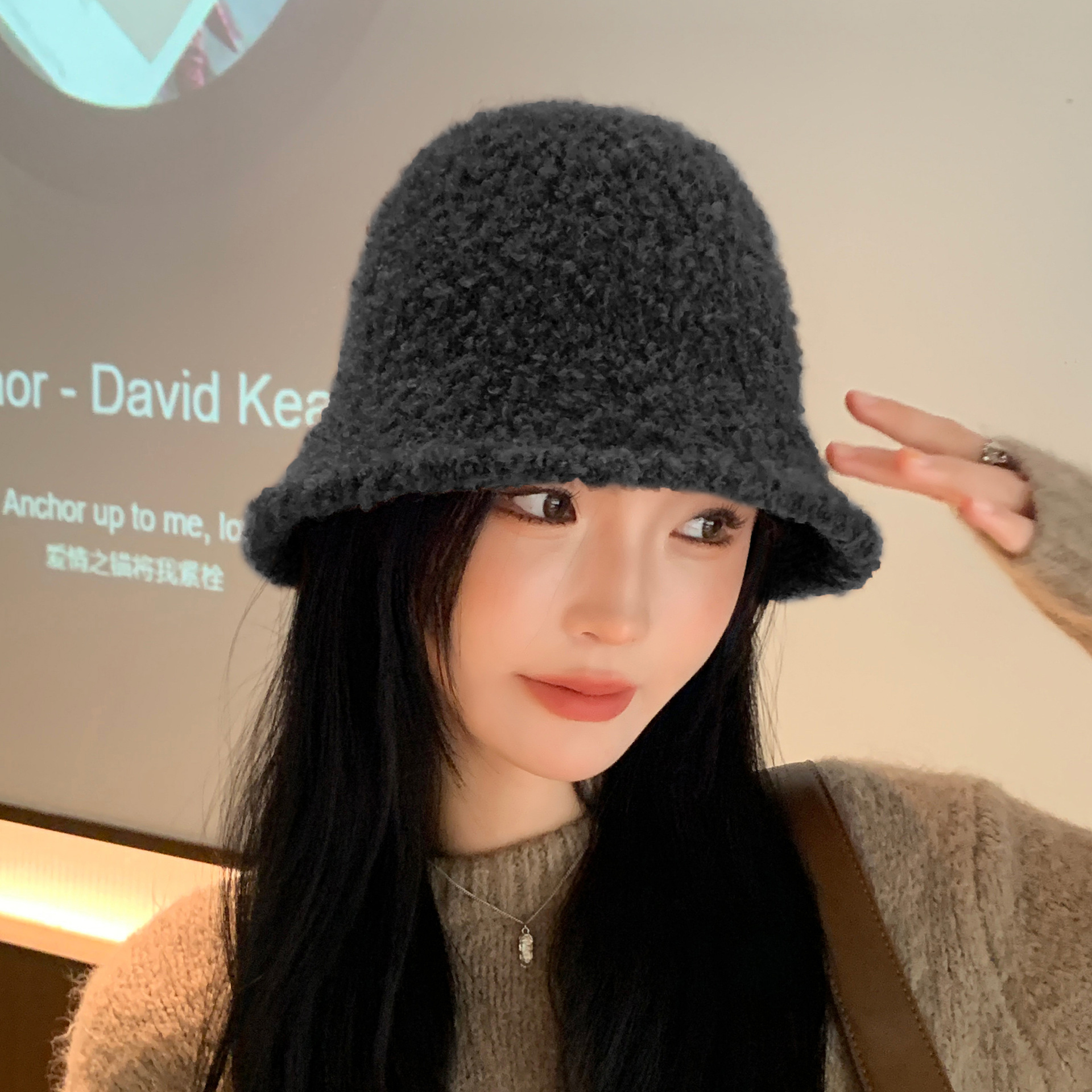 Autumn and Winter New Solid Color Simple Korean Fashion Plush Bucket Hat Outdoor Warmth for Women Show Face Small Hat Trend