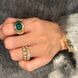 Bague ouverte française légère en pierres précieuses colorées pour femme, style vintage, plaquée or vert émeraude et incrustée de diamants italiens.