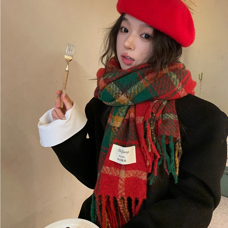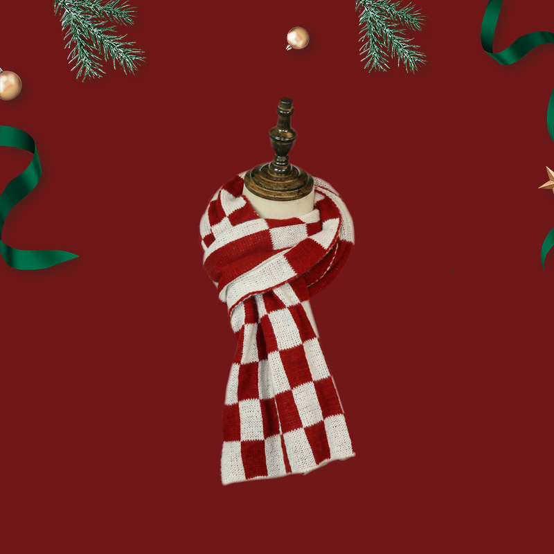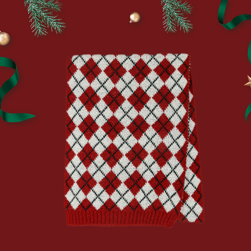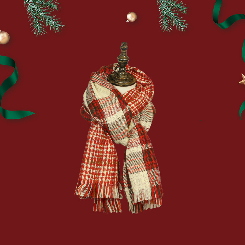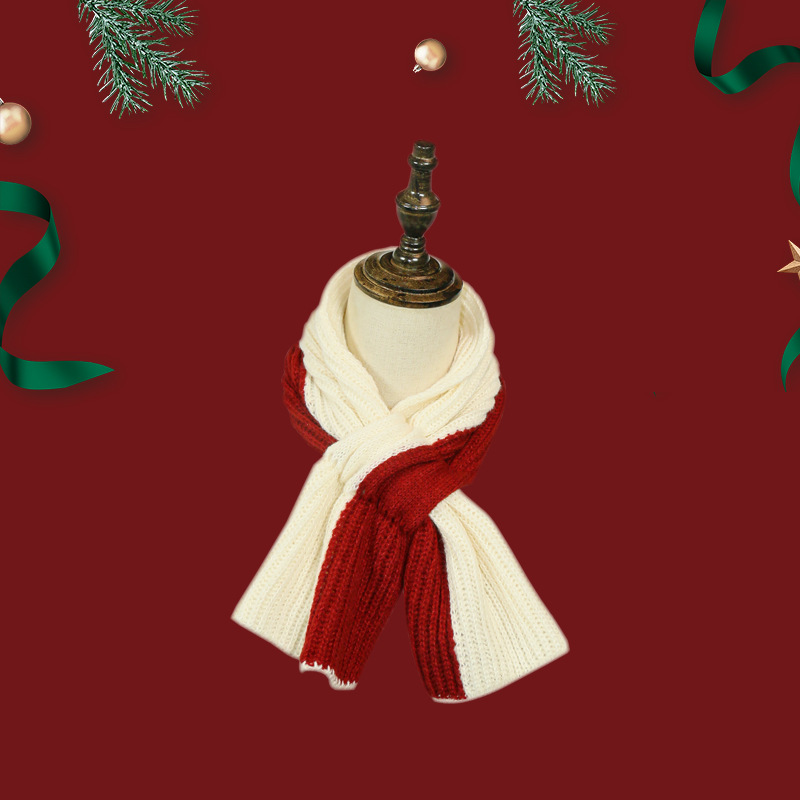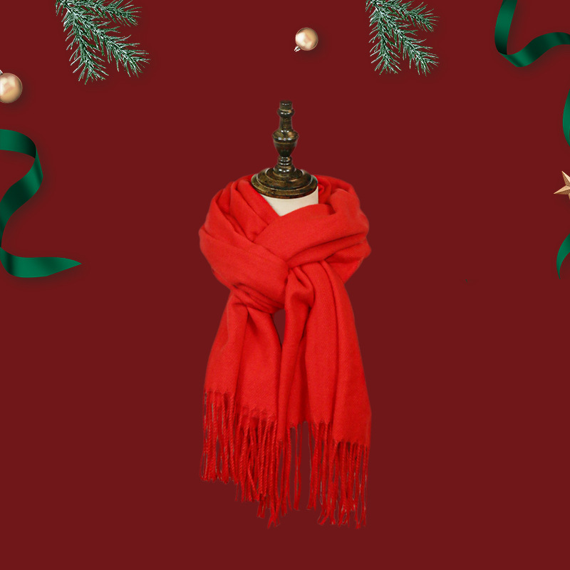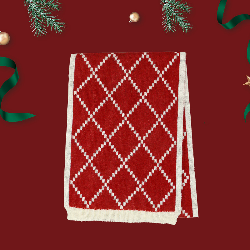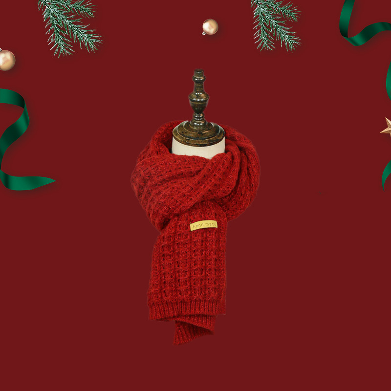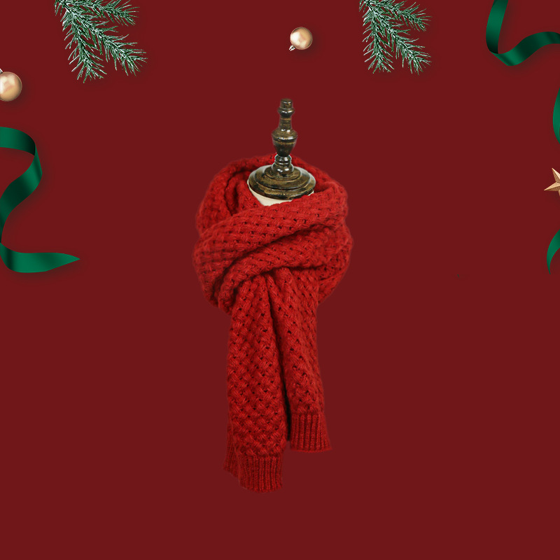 Cadeau d'anniversaire : écharpe rouge, plaid d'hiver pour femme, couple polyvalent, fil tricoté pour le Nouvel An et Noël, col haut de gamme