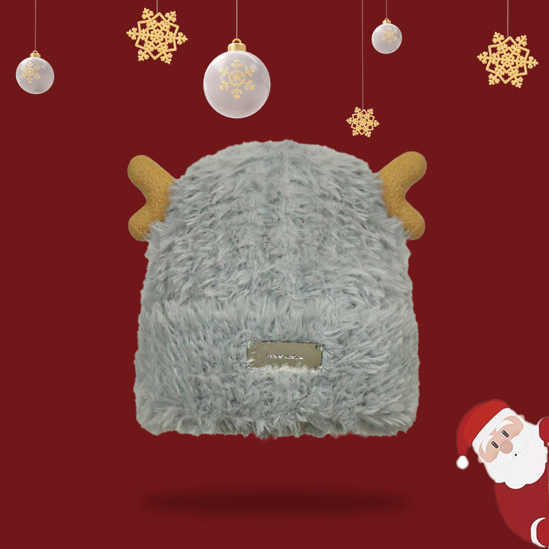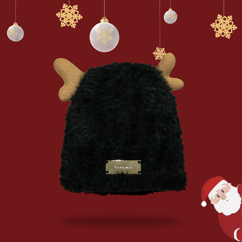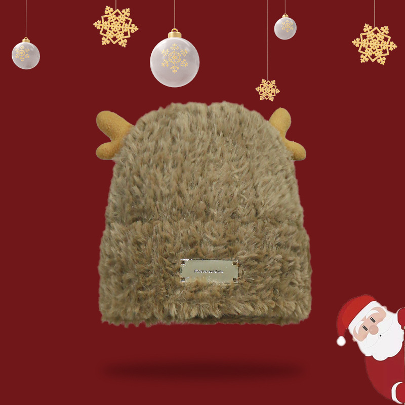 couleur : Chapeau en peluche cerf sans étiquette - rouge vin