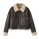 Blouson aviateur en fausse fourrure pour femme - Manteau court streetwear tendance avec col à revers, style gothique, coupe ample, fermeture éclair, marron foncé