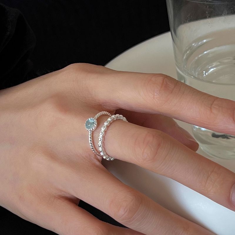 Blue Plain Circle Fine Braided Open Adjustable Ring Niche Design Sense Index Finger Ring Simple Commuting Versatile Ring