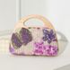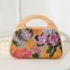 Pochette de soirée bohème en bois et osier avec tulle brodé et chaînette amovible, idéale pour les mariages bohèmes chics et les fêtes d'été.