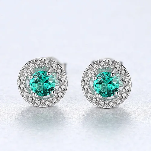 Boucles d'oreilles à tige en argent Sterling véritable de forme ronde pour femmes, pierres précieuses scintillantes vertes rouges bleues fines