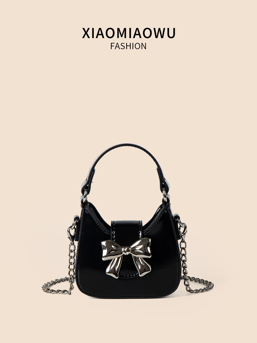 Sac à bandoulière d'été polyvalent, sac à chaîne noir, style moto à la mode Bow, style doux et épicé, sens haut de gamme pour femmes, niche