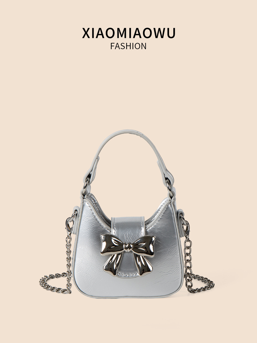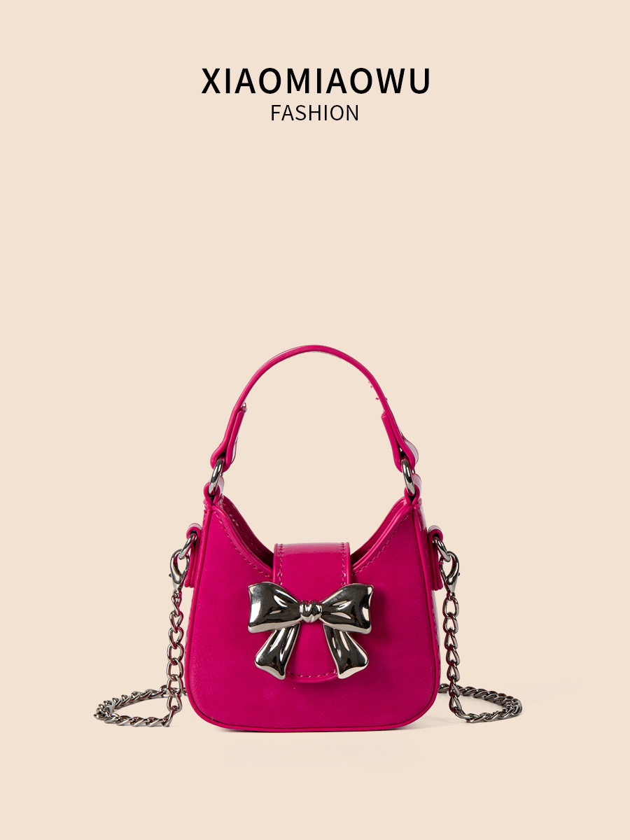 Bow fashion women's motorcycle bag, sweet and spicy style, versatile summer crossbody, black chain bag, women's high-end sense, niche