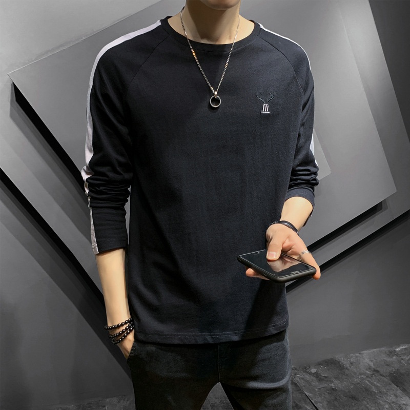 T-shirt à manches longues pour homme, collection printemps-automne, col rond tendance, coupe ample, patchwork de coton.