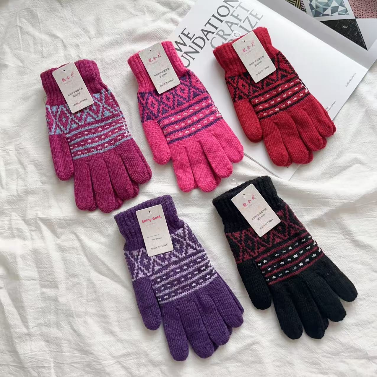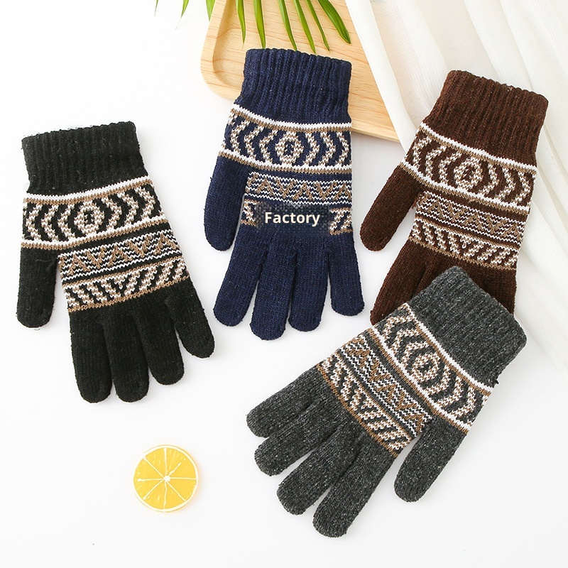 Gants chauds d'hiver pour hommes et femmes, imperméables au froid, en laine et velours tricotées, jacquard, pour la vente ambulante.
