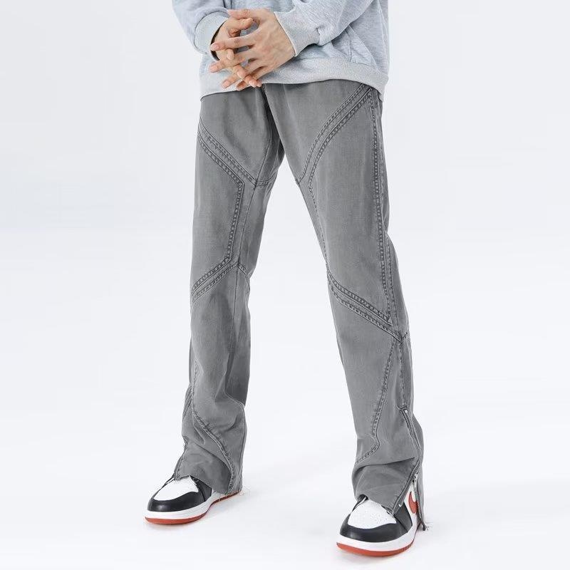 Jeans délavés tendance pour homme, style européen et américain, pantalon décontracté à fermeture éclair, ambiance printemps-été.