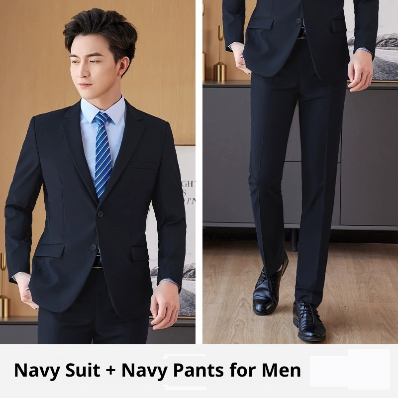 Product Source Category:In Stock,Brand:other,Item Number:2025168,Bargain Category:Business gentleman over 35 years old,Front placket:Single-row Two-Button,Error margin:1-3,Suitable for the season:Spring Season,Is it in stock?:yes,Inventory Type:Complete order,Fabric Name:Sigh,Main fabric composition:Viscose,Content of the main fabric components:Polyester Fiber,Applicable Scenarios:Going to work,Collar Style:Notch Lapel,Slit Design:No slits,Design:Slim Fit,Thickness:Regular,Year/Season of Release:Spring 2024,Design details:Button Decoration,Color:Dark Blue Men's Suit + Dark Blue Men's Pants, Black Men's Suit + Dress Pants, Royal Blue Men's Suit + Dress Pants,Size:Men's Size S, Men's Size M, Men's Size L, Men's Size XL, Men's Size 2XL, Men's Size 3XL, Men's Size 4XL,Is it exclusively for cross-border export supply?:No,Style:Business Formal Attire,Appraisal Agency:Normal,Clothing Craftsmanship:Adhesive Lining Technology,Original Design Source:No,Is there a quality inspection report?:No