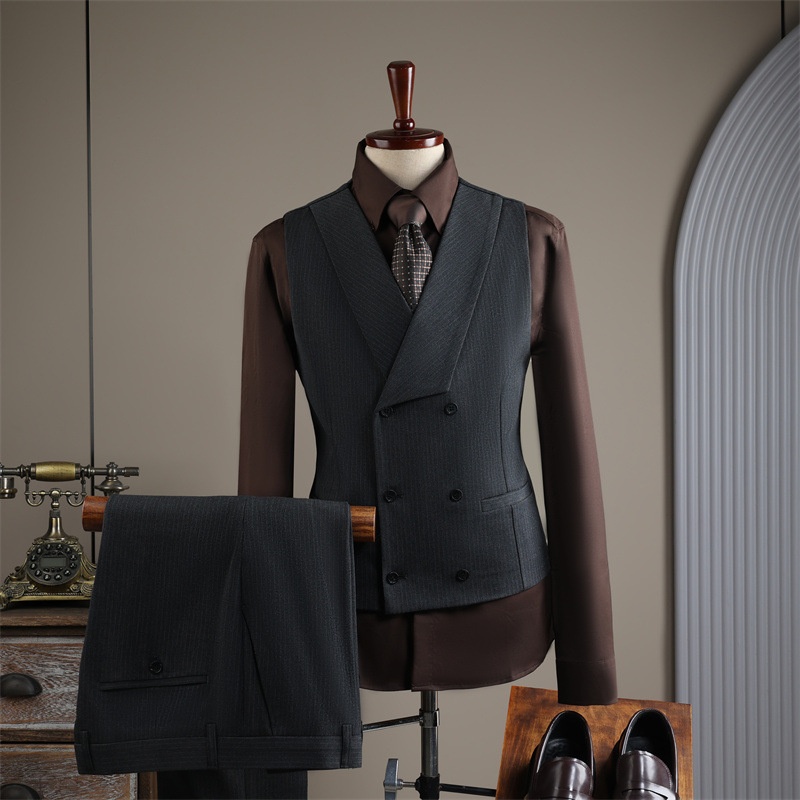 Single Button Suit Three-Piece Set Default Single Row, Double Row Vest Can Be Purchased Separately If Needed