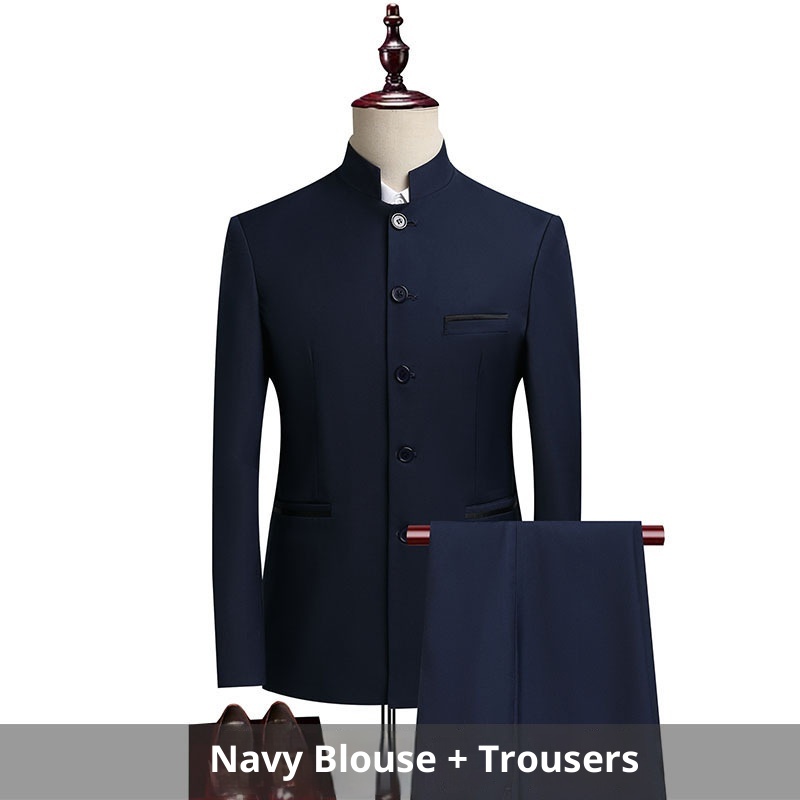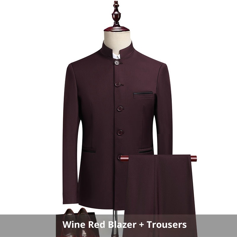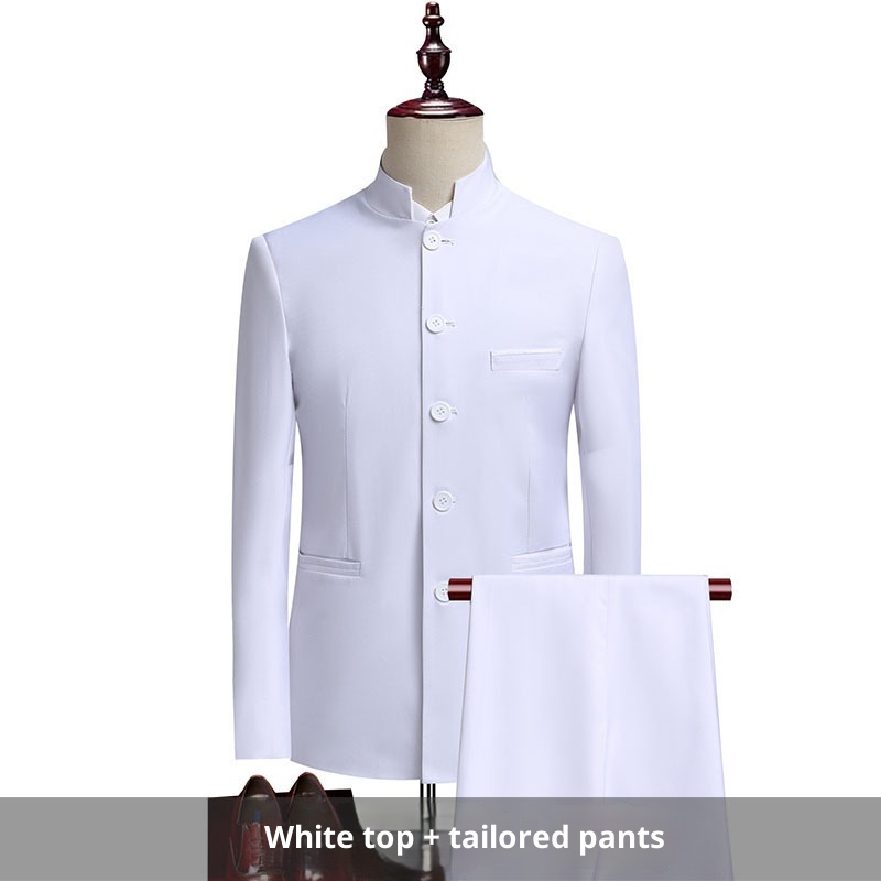 Product Source Category:In Stock,Brand:Victorious Autumn Noble,Item Number:817058Two-piece set,Bargain Category:Fashionable Urban 24-35 Years Old,Front placket:Single-row five-hole button,Error margin:1-3cm.,Suitable for the season:Four Seasons,Is it in stock?:yes,Inventory Type:Complete order,Fabric Name:Synthetic Blend Fabric,Main fabric composition:Acetate fiber,Content of the main fabric components:80,Applicable Scenarios:Casual,Collar Style:Stand Collar,Slit Design:No slits,Design:Slim Fit,Thickness:Regular,Year/Season of Release:2025 Summer,Design details:Button Decoration,Color:Black top + pants, navy blue top + pants, burgundy top + pants, white top + pants, black top, navy blue top, burgundy top, white top, black pants, navy blue pants, burgundy pants, white pants,Size:M,L,XL,XXL,3XL,4XL,5XL,6XL,Main downstream platforms:, , , , Independent Station, ,Main sales regions:Europe, South America, Southeast Asia, North America,We have authorized private labels available:yes,Is it exclusively for cross-border export supply?:yes,Style:Light Business,Clothing Craftsmanship:Adhesive Lining Technology,Original Design Source:yes,Is there a quality inspection report?:No,Material function:Traditional suit fabric is breathable.Does not pill, doesn't attract lint, does not fade