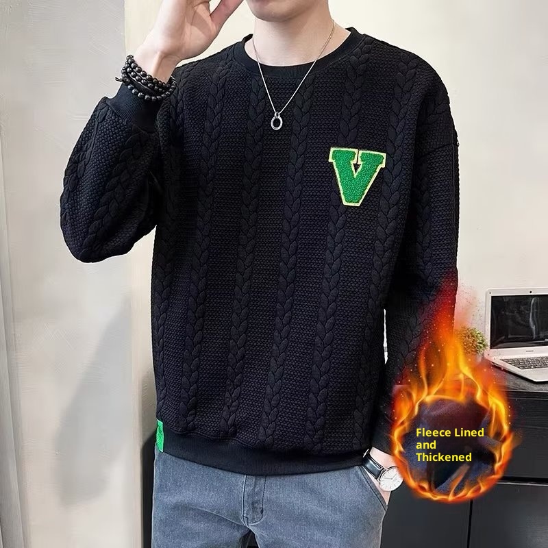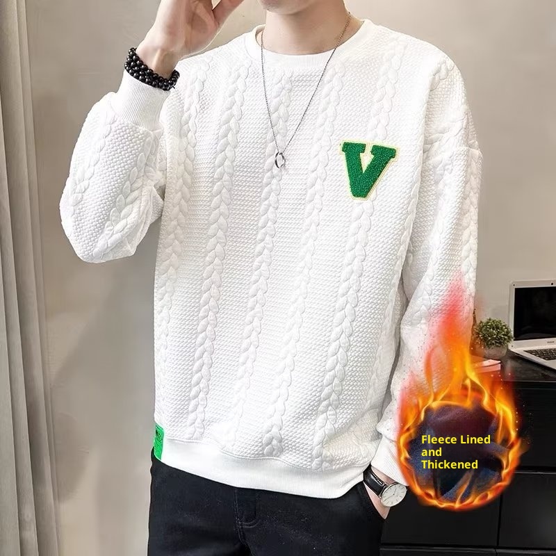 White Sweatshirt for Men, High-End Feel, Spring and Autumn Style, 2024 New Trendy Winter Round Neck Design, Unique Men's Autumn Clothing