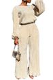 Ensemble deux pièces décontracté ample plissé à haute élasticité pour femme C3077