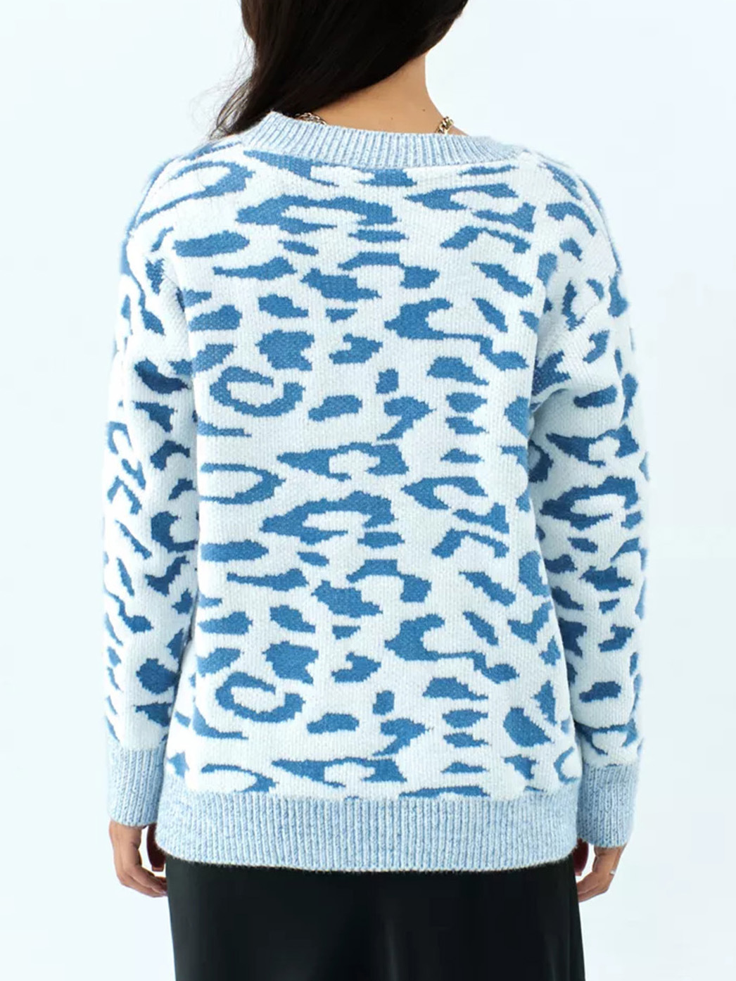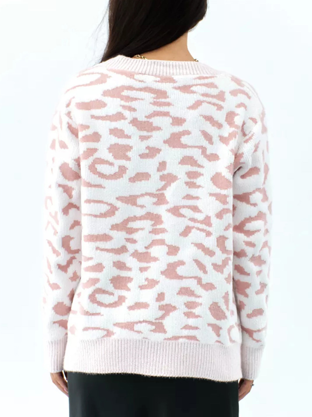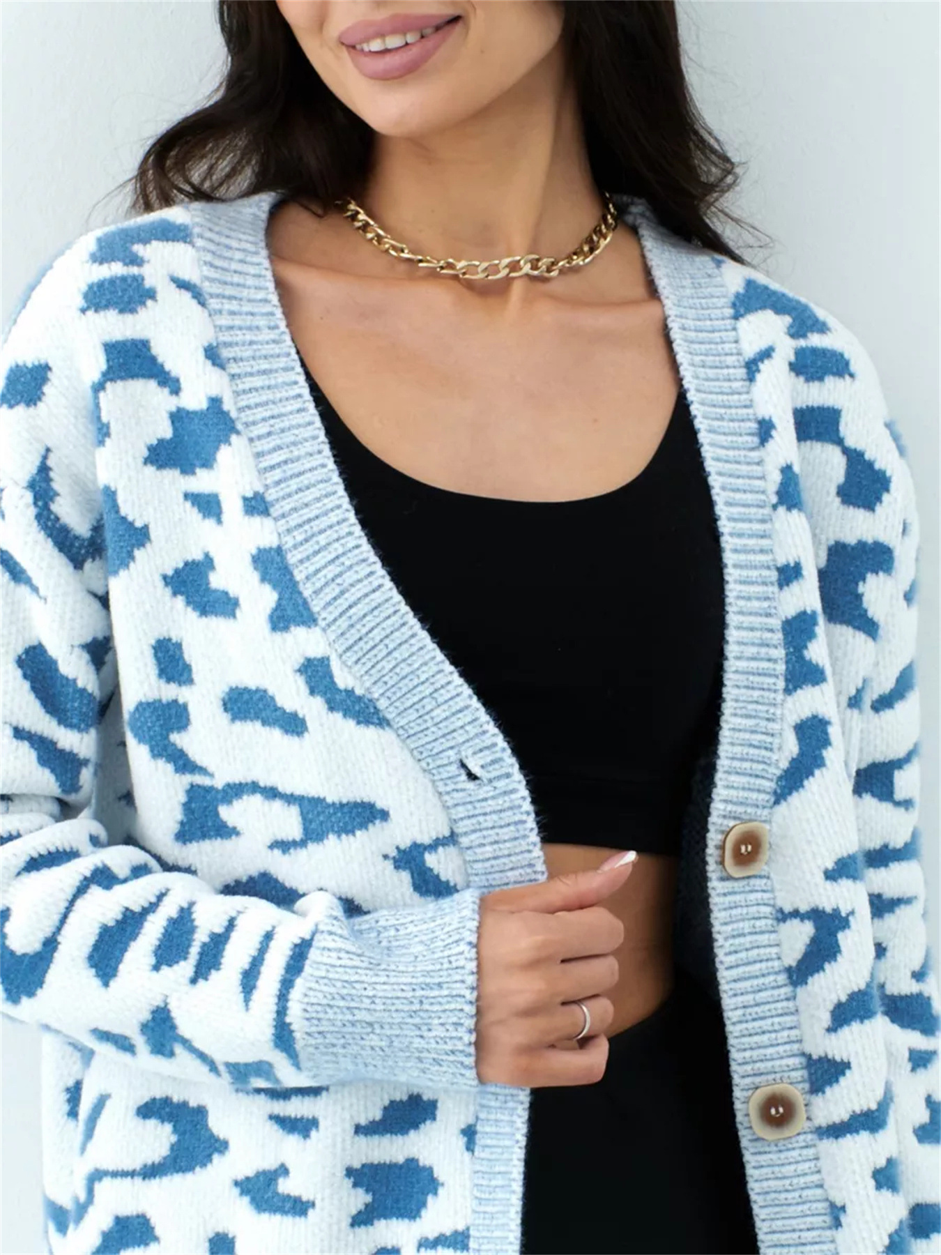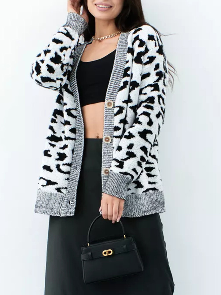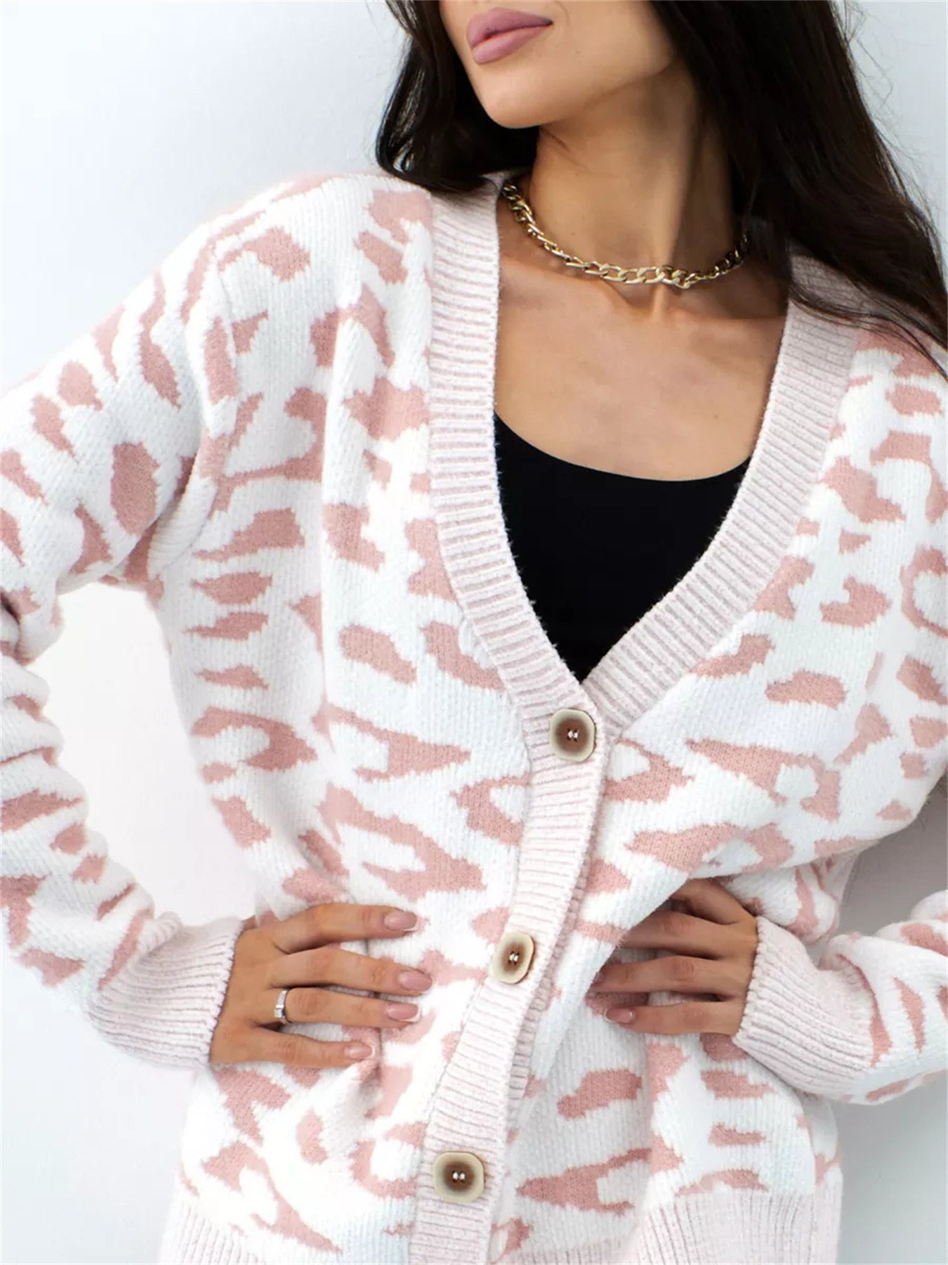 Cardigan tricoté imprimé léopard pour femme, veste pull à simple boutonnage, col en v, nouvelle collection automne et hiver