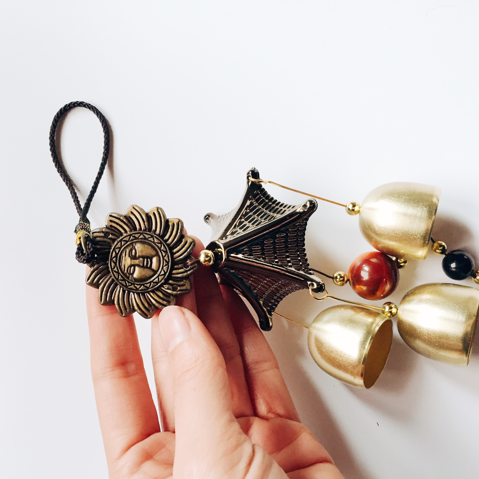 Carillon éolien antique en bronze, résistant à la rouille, en alliage de cuivre, porte-bonheur, ornement suspendu, ornement de bon augure à suspendre.